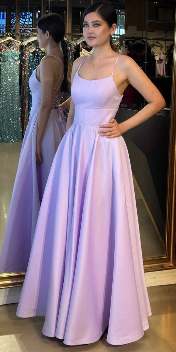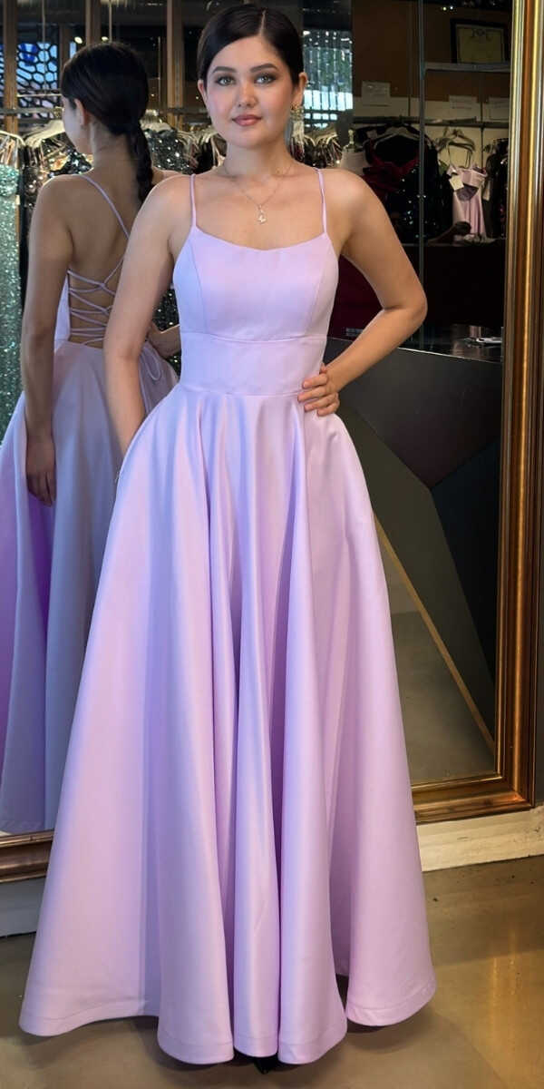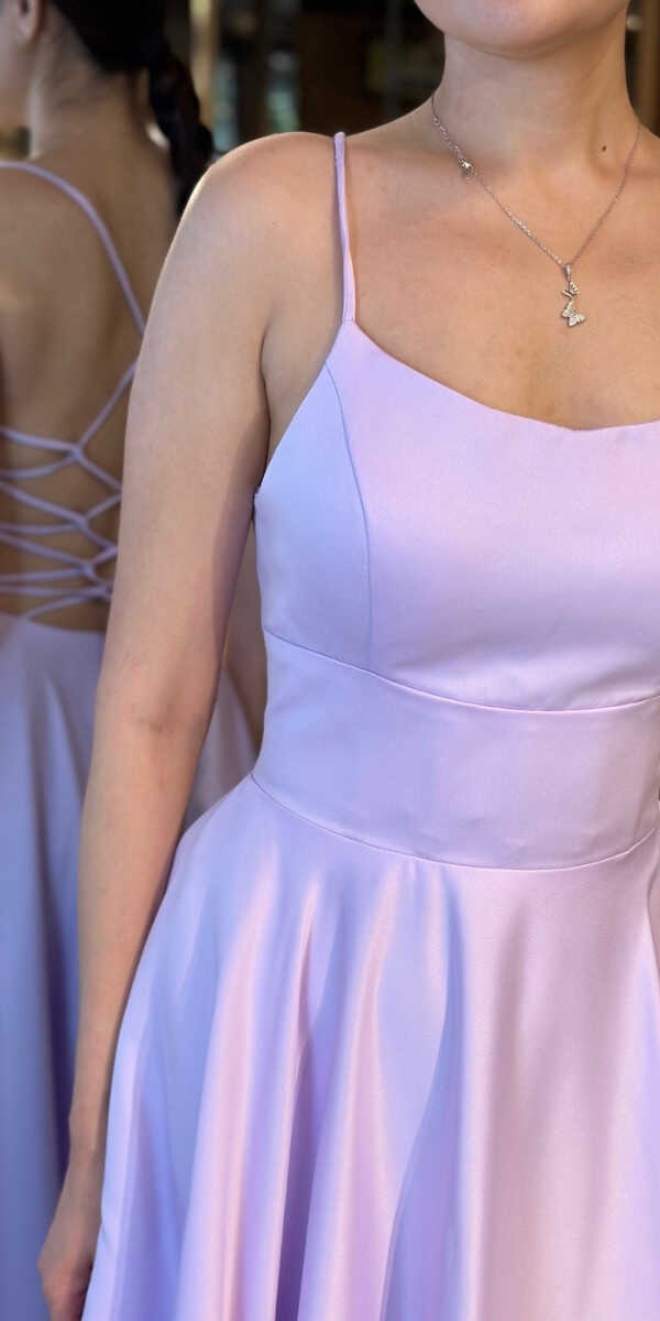 Açık Lila Renk Kloş Etekli Uzun Abiye Elbise, Saten Kumaştan Üretilmiş olup Satenin Pürüzsüz Işığı Görünümünüze Zarafet Katacaktır. Elbisedeki İp Askılar Kullanım Kolaylığı Yaratacaktır. Şık Sırt Dekoltesi Size Çok Yakışacak.
