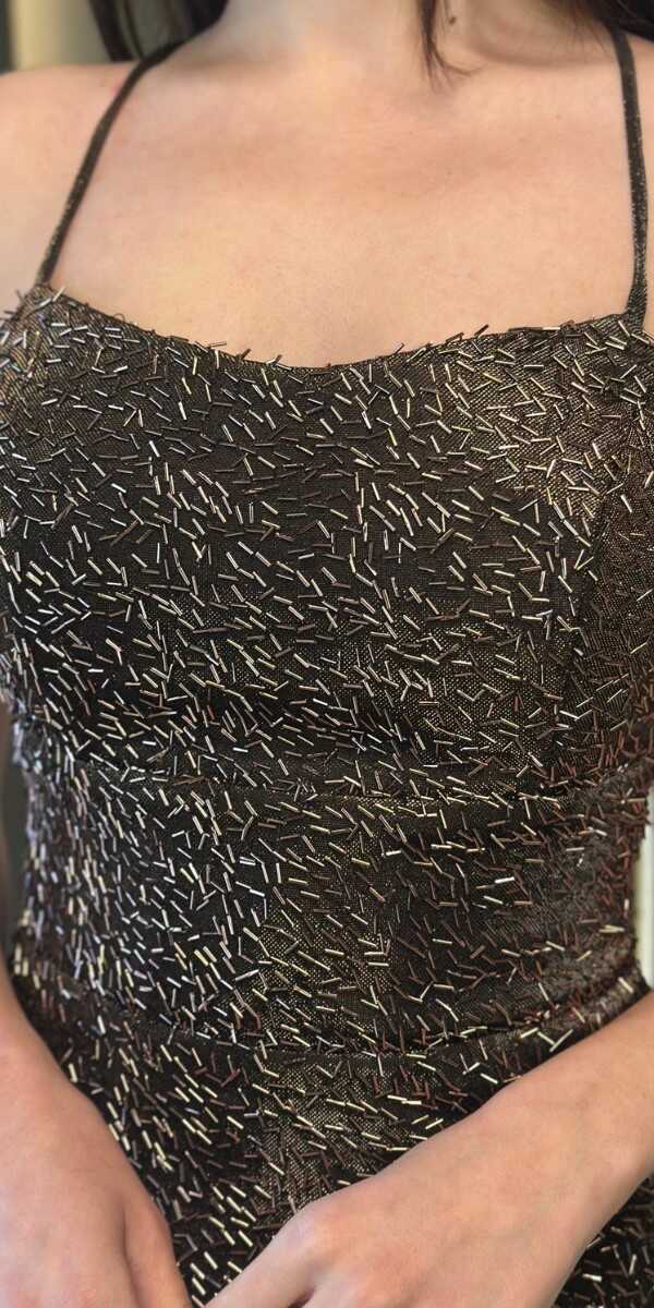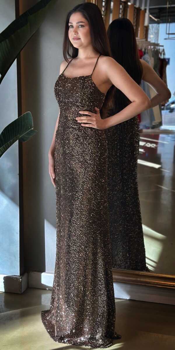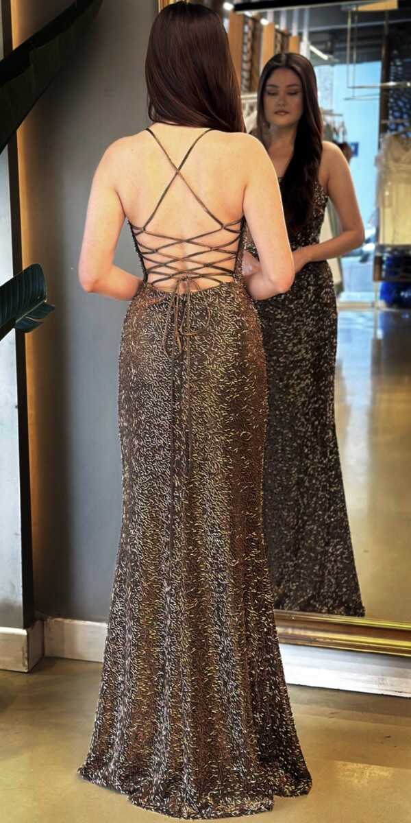 Bakır Renk Düz Kesim Uzun Abiye Elbise, Pullu Boncuklu Kumaştan Üretilmiş Olup Parıltı ve Zarafetin Buluştuğu Kumaş Türü Sizi Işıl Işıl Gösterecektir. Elbisedeki İp Askılar Kullanım Kolaylığı Yaratacaktır. Şık Sırt Dekoltesi Size Çok Yakışacak.