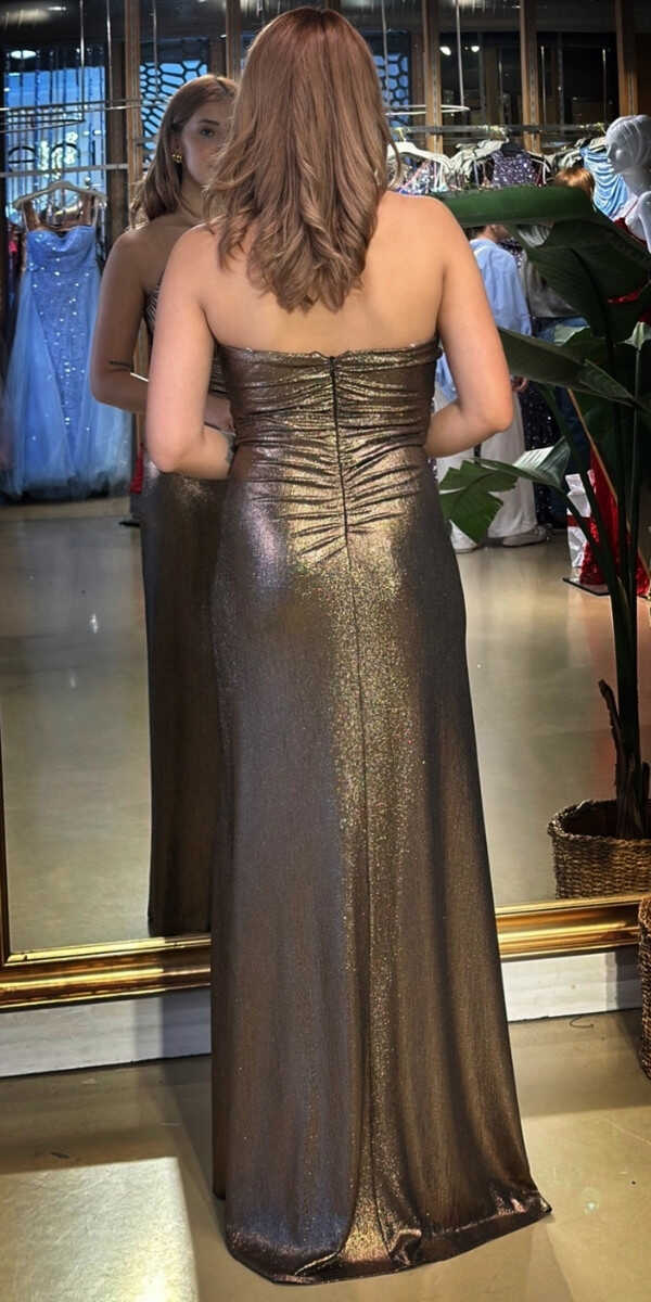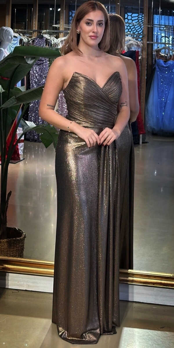 Straplez Yaka Bakır Renk Düz Kesim Uzun Abiye Elbise, Likralı Kumaştan Üretilmiş olup Rahatlık Seviyesini Arttıran, Çok Konforlu, Pürüzsüz, Yumuşak Olmasıyla Tüm Gününüzün Kalitesini Arttıracaktır..