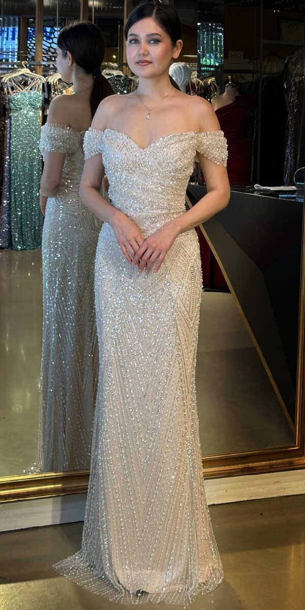 Bej Renk Düz Kesim Uzun Abiye Elbise, Pullu Boncuklu Kumaştan Üretilmiş olup Parıltı ve Zarafetin Buluştuğu Kumaş Türü Sizi Işıl Işıl Gösterecektir. Şık Sırt Dekoltesi Size Çok Yakışacak.