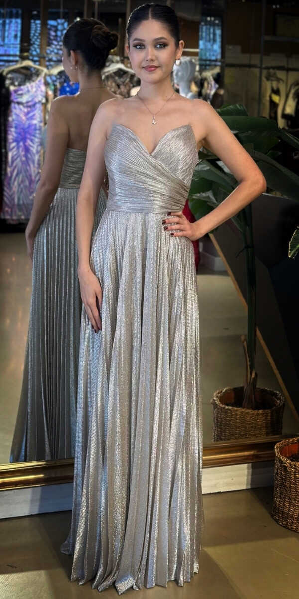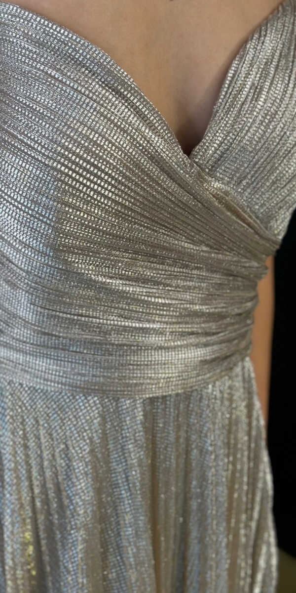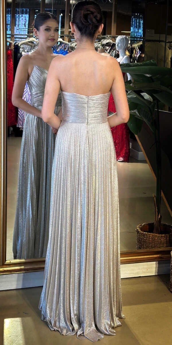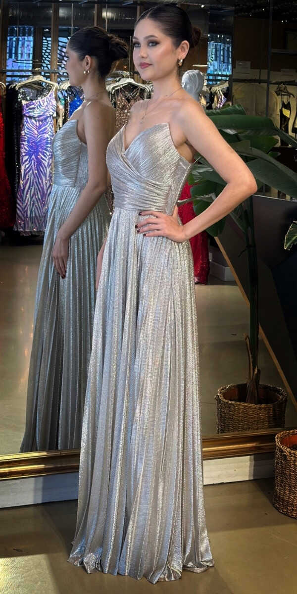 Bej Renk Kloş Etekli Uzun Abiye Elbise, Jakarlı Kumaştan Üretilmiş Olup Sizi Gecenize Işıltı Katacaktır