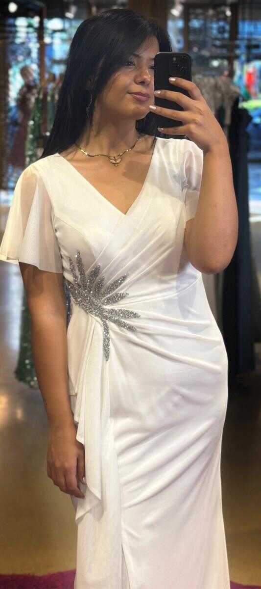 Beyaz Renk Düz Kesim Uzun Abiye Elbise, Tül Kumaştan Üretilmiş Olup Hafif Olmasından Kaynaklı Sizi Gece Boyu Rahat Hissettirecek. Taşlı Aksesuar Dikkatleri Üzerinizde Toplayacak. Yırtmaç Detayı Cesur ve Çarpıcı Bir Stil Sunacaktır.