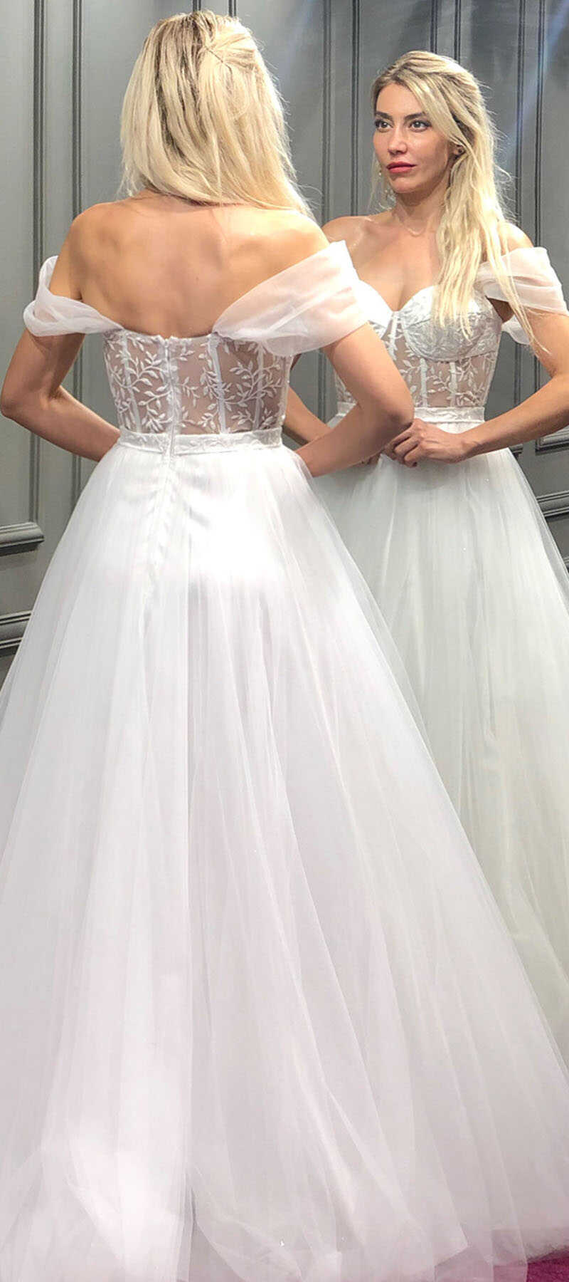 Beyaz Renk Kloş Etekli Uzun Abiye Elbise, Tül Kumaştan Üretilmiş Olup Hafif Olmasından Kaynaklı Sizi Gece Boyu Rahat Hissettirecek.