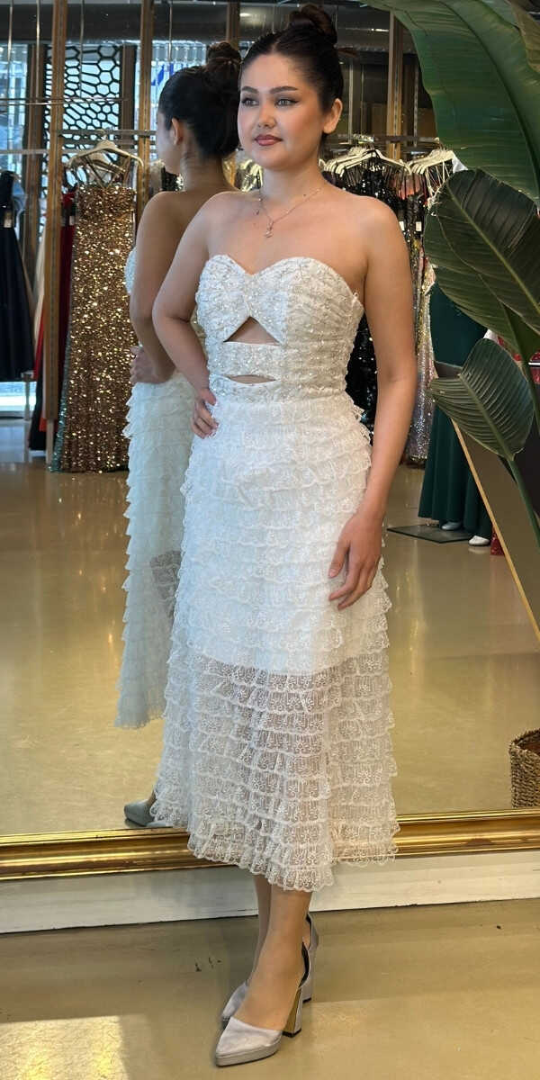 Boncuklu Beyaz Abiye 7671
