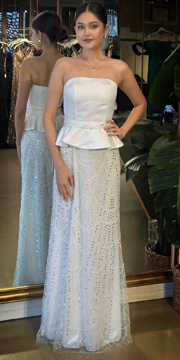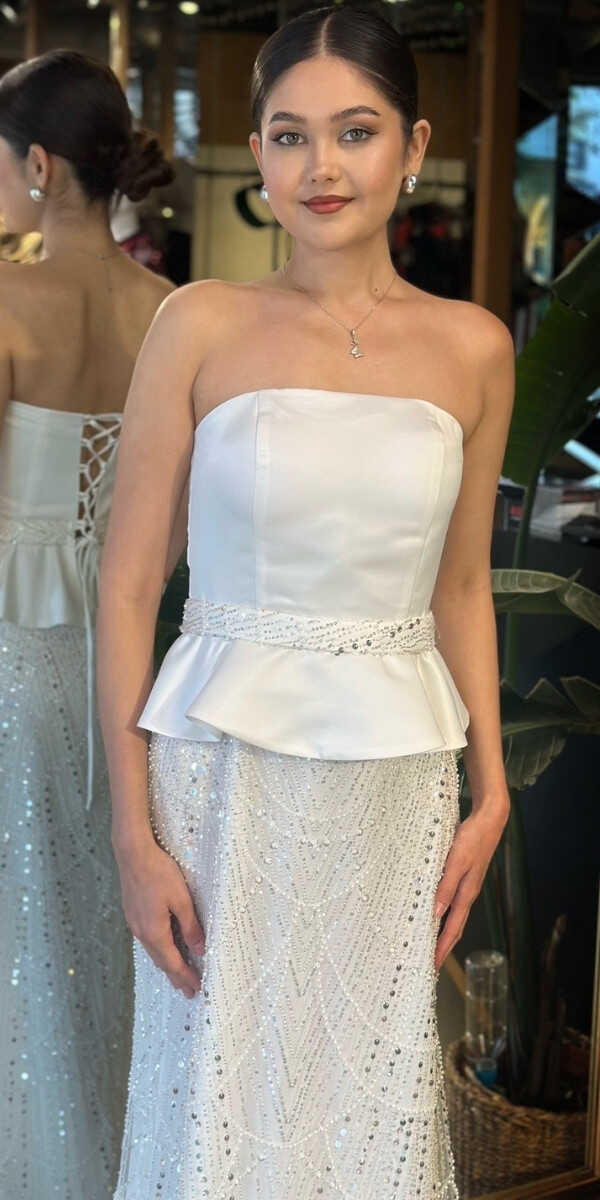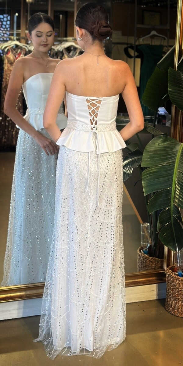Gelince Haber VerStraplez Yaka Beyaz Renk Düz Kesim Uzun Abiye Elbise, Pullu Boncuklu Kumaştan Üretilmiş olup Parıltı ve Zarafetin Buluştuğu Kumaş Türü Sizi Işıl Işıl Gösterecektir. Bel Kemeri Belinizi İncelterek Sizi Daha İnce Gösterecektir. Şık Sırt Dekoltesi Size Çok Yakışacak.