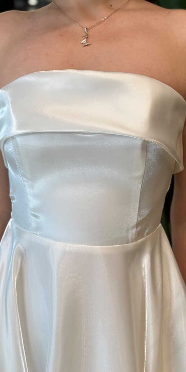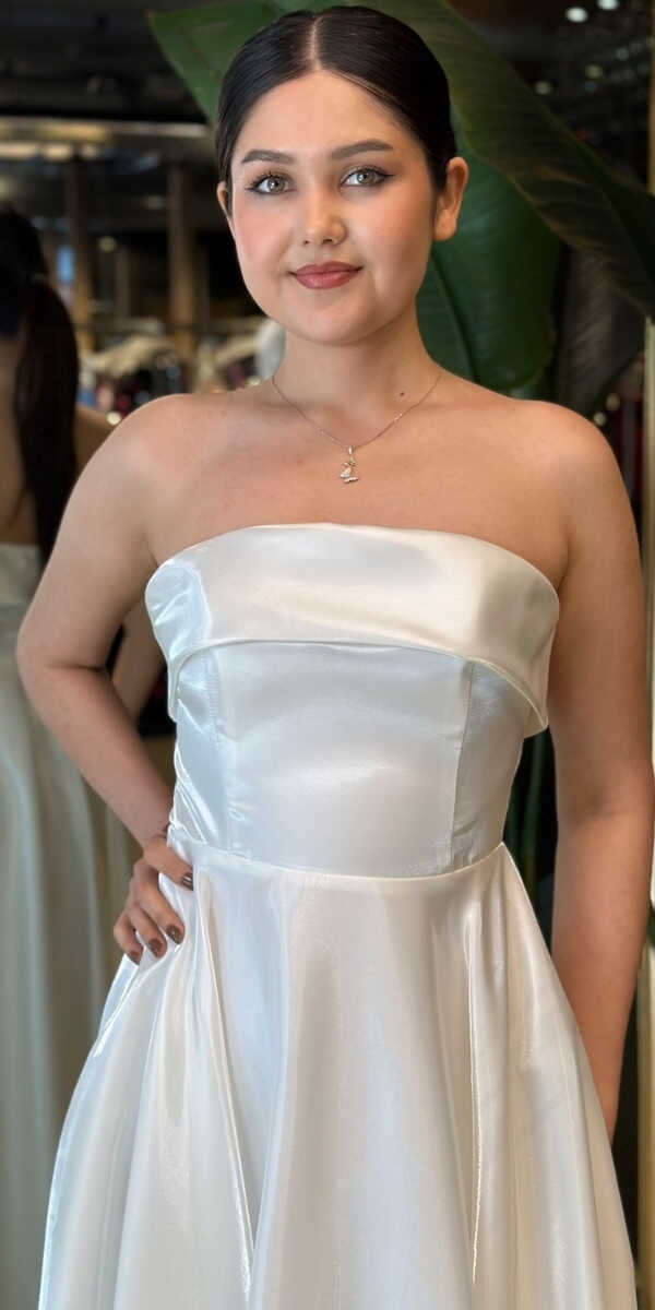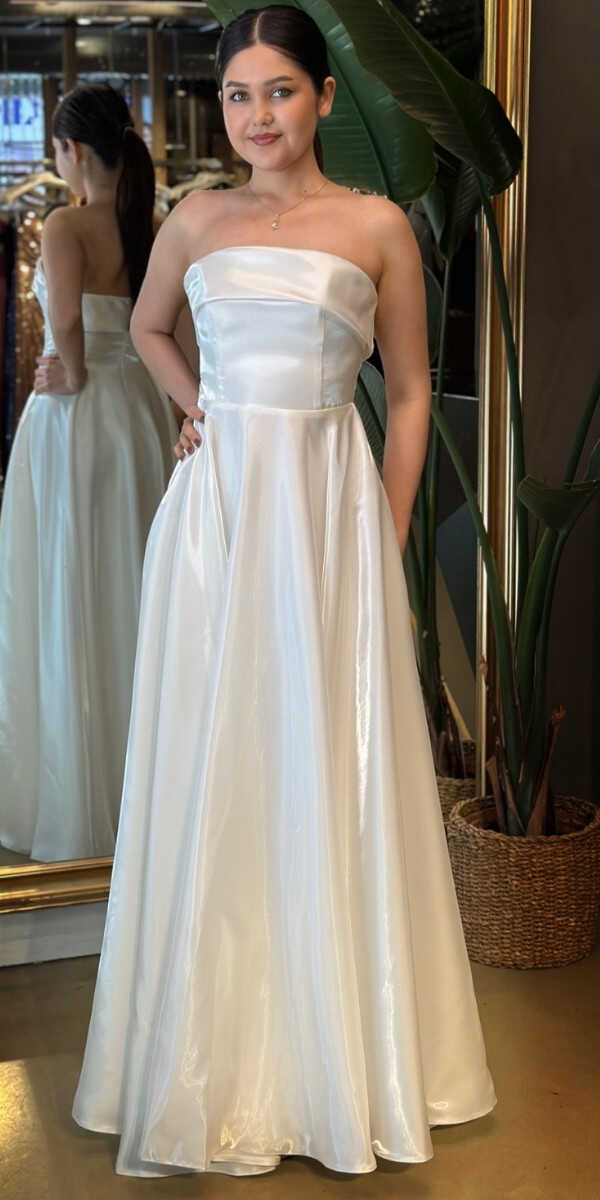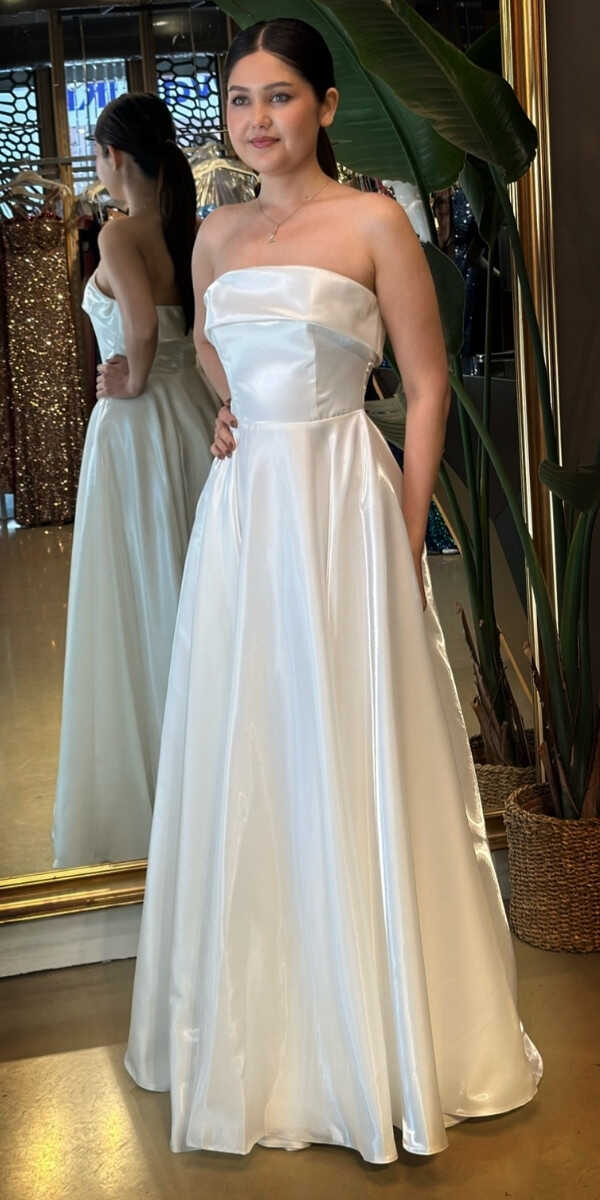 Beyaz Renk Kloş Etekli Uzun Abiye Elbise, Organze Kumaştan Üretilmiş olup özel günlerinizde renk katar
