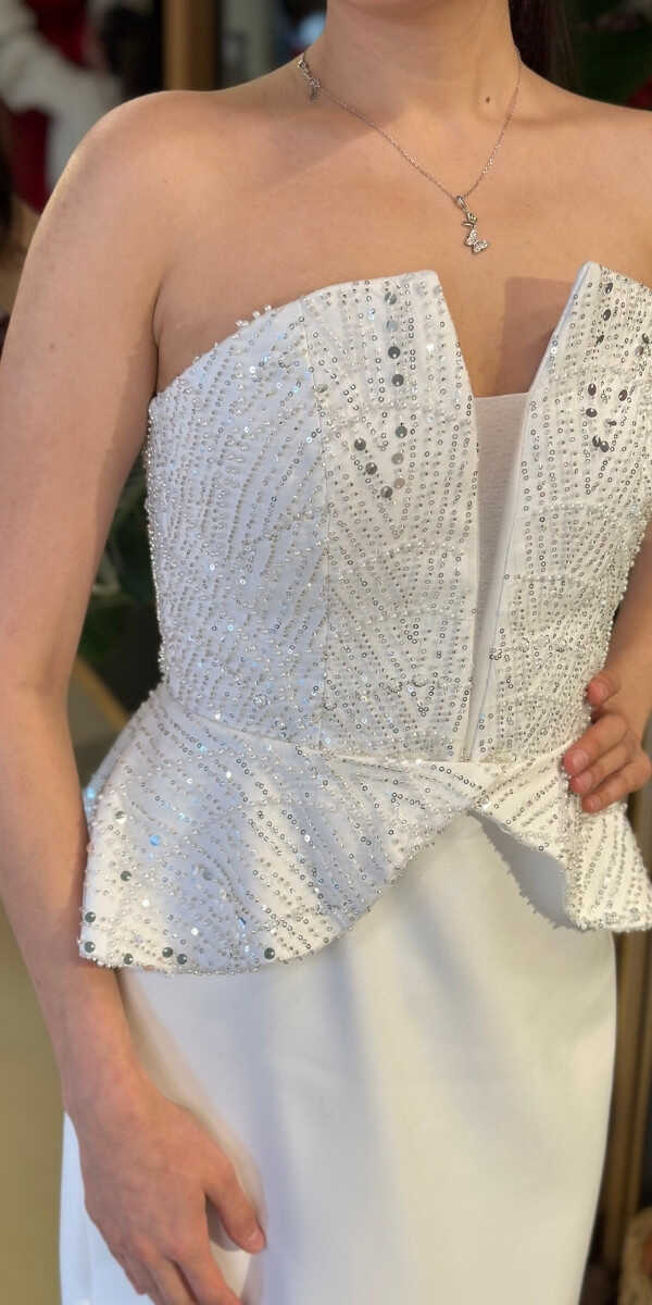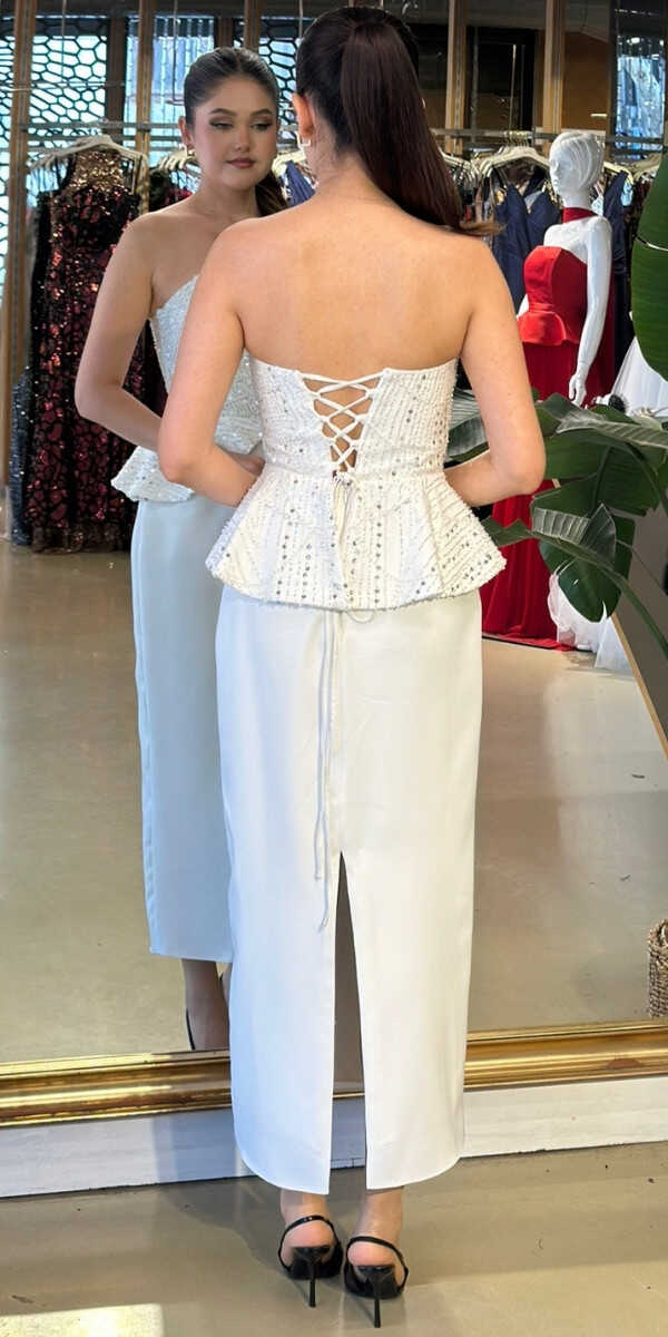 Gelince Haber VerStraplez Yaka Beyaz Renk Düz Kesim Midi Abiye Elbise, Krep Kumaştan Üretilmiş olup Hafif Ve Daha Az Kırışan Krep Kumaş Sizi Daha Rahat Hissettirecektir. Vücuda uyum sağlayan likralı kumaş, dinamik bir duruş kazandırır. Şık Sırt Dekoltesi Size Çok Yakışacak. Yırtmaç Detayı Cesur ve Çarpıcı Bir Stil Sunacaktır.
