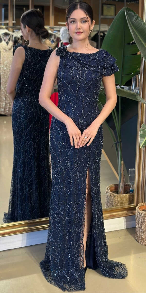 LACİVERT UZUN ABİYE ELBİSE