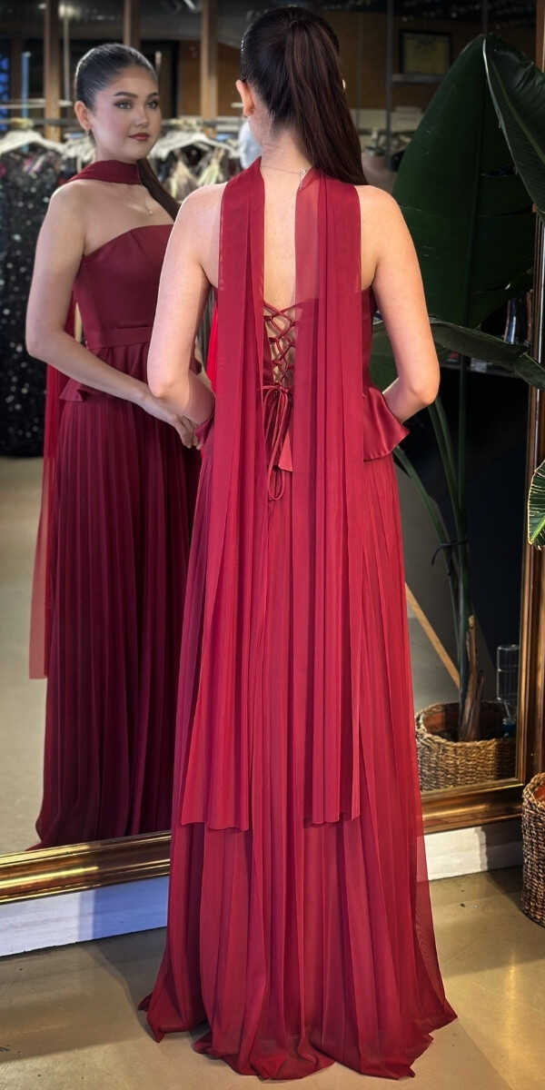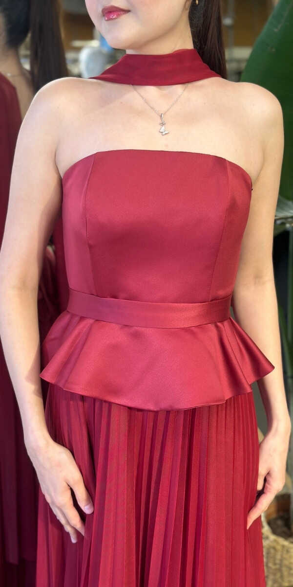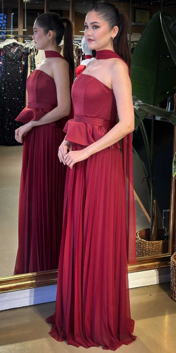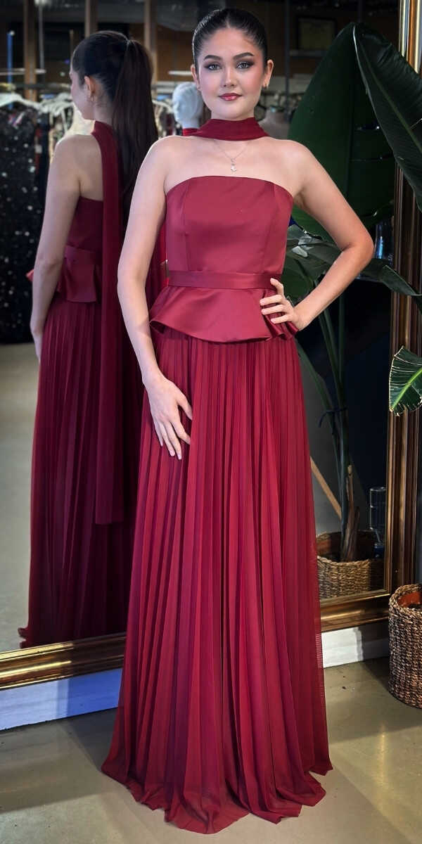 Straplez Yaka Bordo Renk Kloş Etekli Uzun Abiye Elbise, Şifon Kumaştan Üretilmiş olup Uçuş Uçuş Şifon Kumaş Tüm Dikkatleri Üzerinize Toplayacaktır. Şık Sırt Dekoltesi Size Çok Yakışacak.