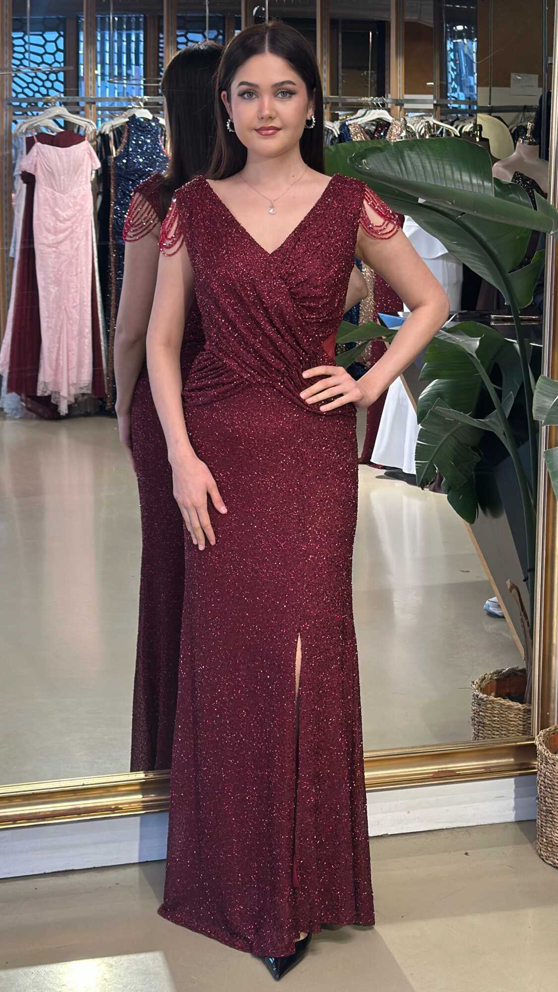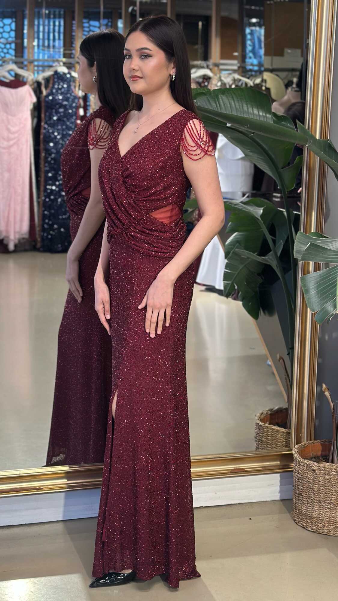 Gelince Haber VerV Yaka Bordo Renk Düz Kesim Uzun Abiye Elbise, Pullu Boncuklu Kumaştan Üretilmiş olup Parıltı ve Zarafetin Buluştuğu Kumaş Türü Sizi Işıl Işıl Gösterecektir. Vücuda uyum sağlayan likralı kumaş, dinamik bir duruş kazandırır. Kalın askılı yapısıyla destekleyici ve modern bir görünüm sağlar. Yırtmaç Detayı Cesur ve Çarpıcı Bir Stil Sunacaktır.