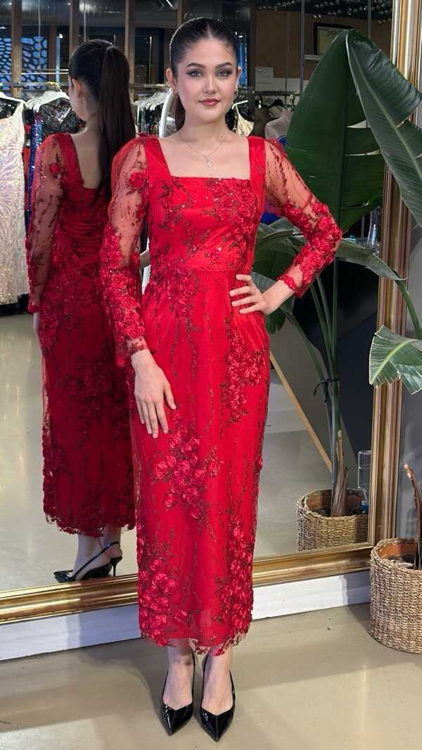 KIRMIZI UZUN ABİYE ELBİSE
