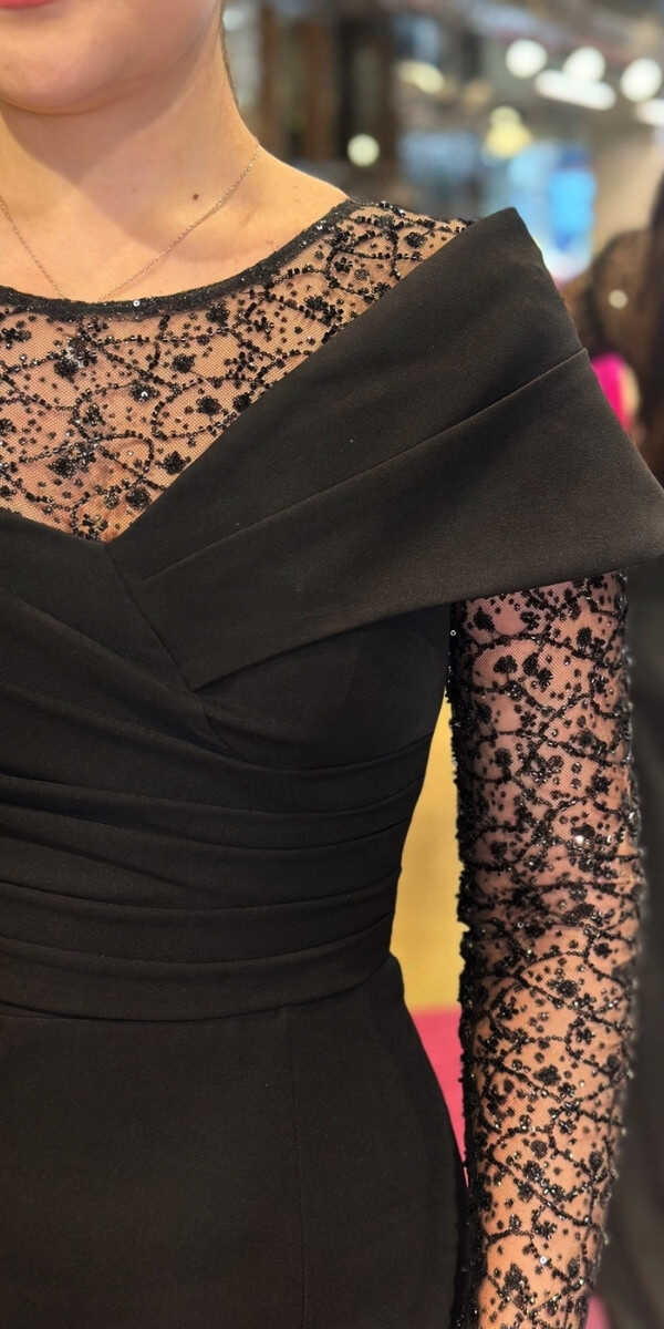 Black Color Straight Cut, Long Evening Dress, Has Been Produced From Crepe Fabric. Slit Detail Will Present A Brave And Striking Style. Lightweight And Less Wrinkled Crepe Fabric Will Make You Feel More Comfortable.