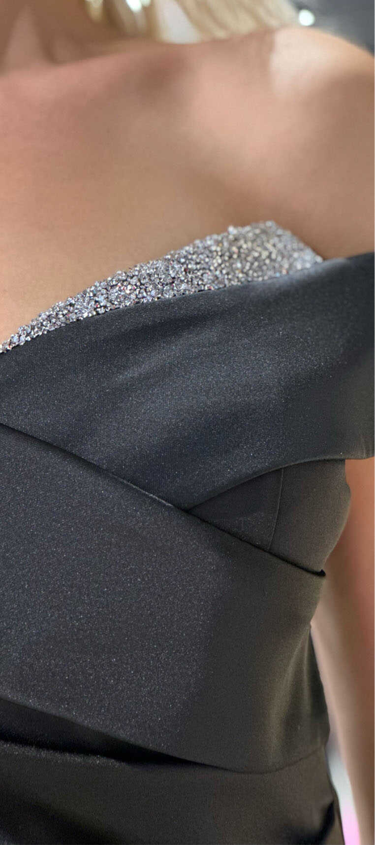 Black Color Straight Cut, Long Evening Dress, Has Been Produced From Satin Fabric. Stone Accessory Will Gather Attention On You. Slit Detail Will Present A Brave And Striking Style. The Smooth Light Of Satin Will Add Elegance To Your Look.