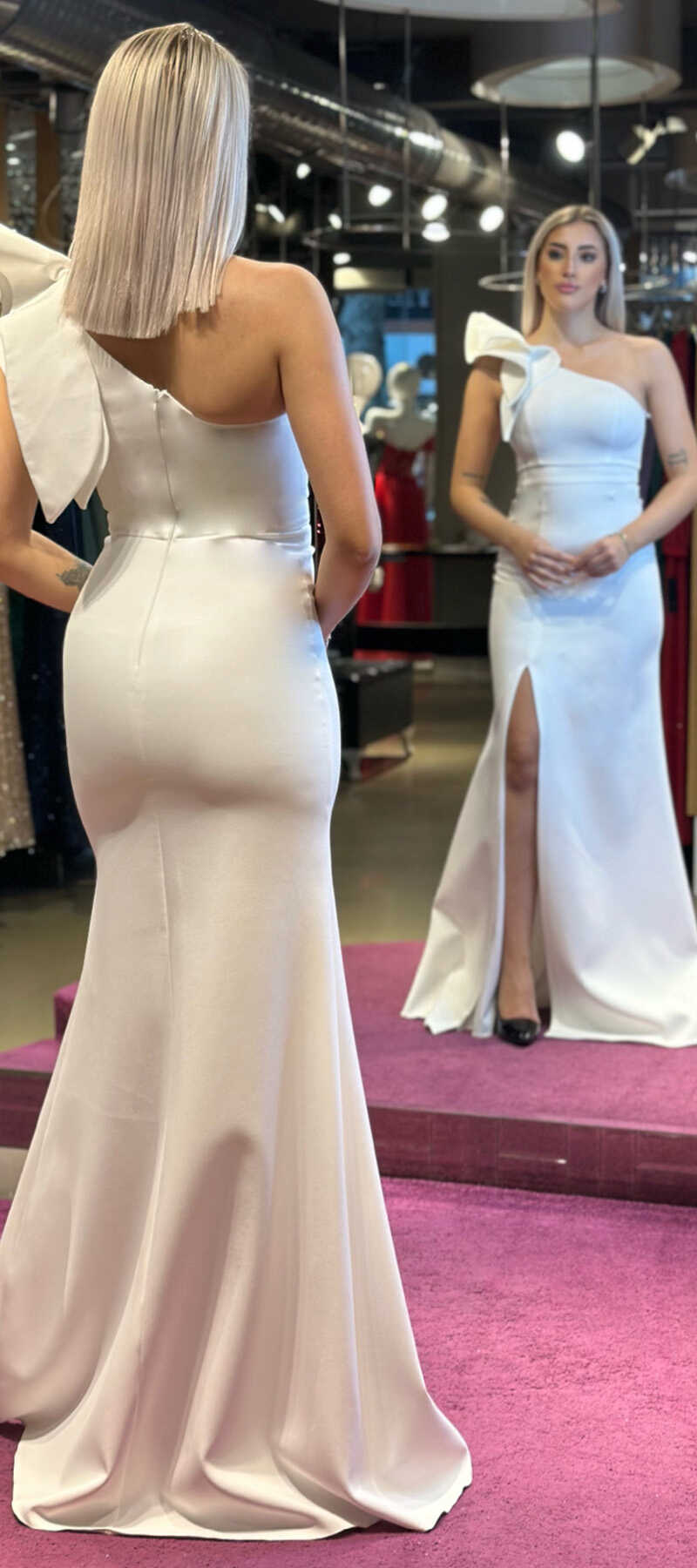 Ecru Color Straight Cut, Long Evening Dress, Has Been Produced From Crepe Fabric. Slit Detail Will Present A Brave And Striking Style.