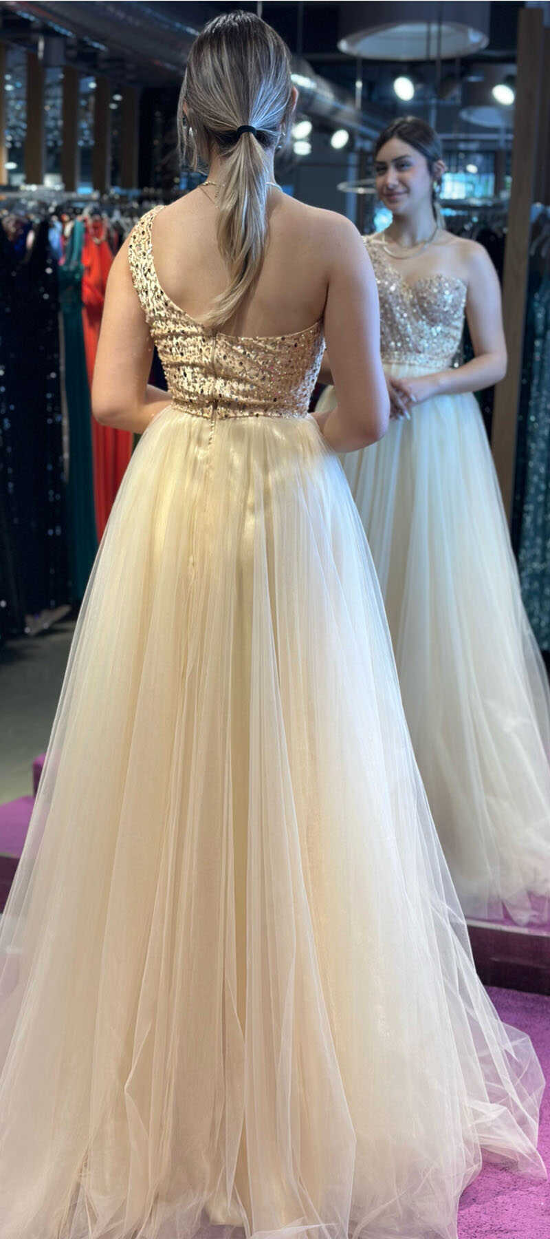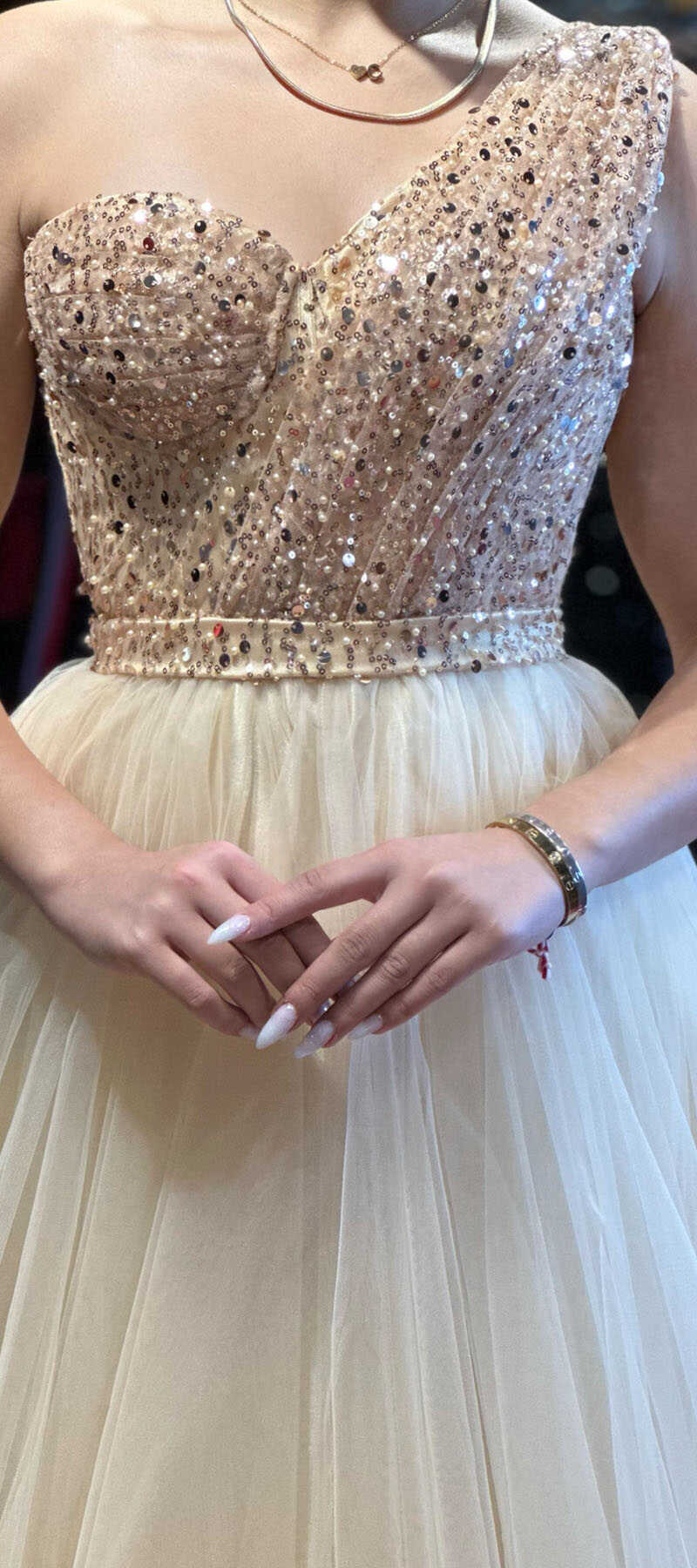 Gold Color Flared Skirt, Long Evening Dress, Has Been Produced From Tulle Fabric. It Will Make You Feel Comfortable All Night Long Because It Is Light.