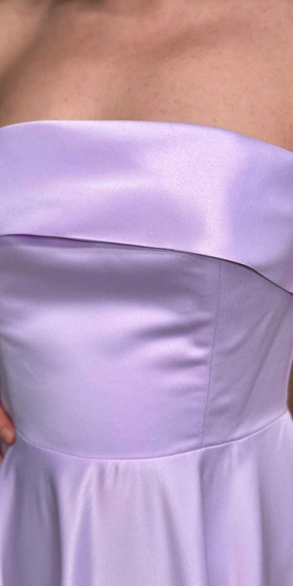 Lilac Color Flared Skirt, Midi Evening Dress, Has Been Produced From Satin Fabric. The Smooth Light Of Satin Will Add Elegance To Your Look.