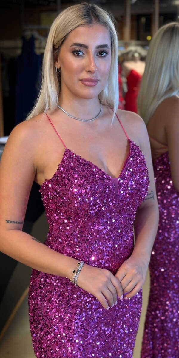 Fuşya Renk Balık Etekli Uzun Abiye Elbise, Pul Payet Kumaştan Üretilmiş olup Likralı ve Payet İşlemeli Kumaşı, Dikkat Çekici Işıltısının Yanı Sıra Vücudunuzu Sararak Sizi Olduğunuzdan İnce Gösterecektir. Elbisedeki İp Askılar Kullanım Kolaylığı Yaratacaktır. Şık Sırt Dekoltesi Size Çok Yakışacak.