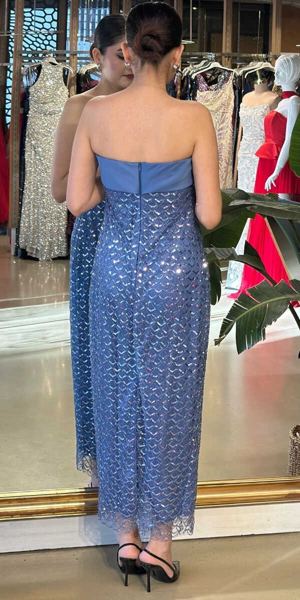 İndigo Midi Abiye Elbise 7759