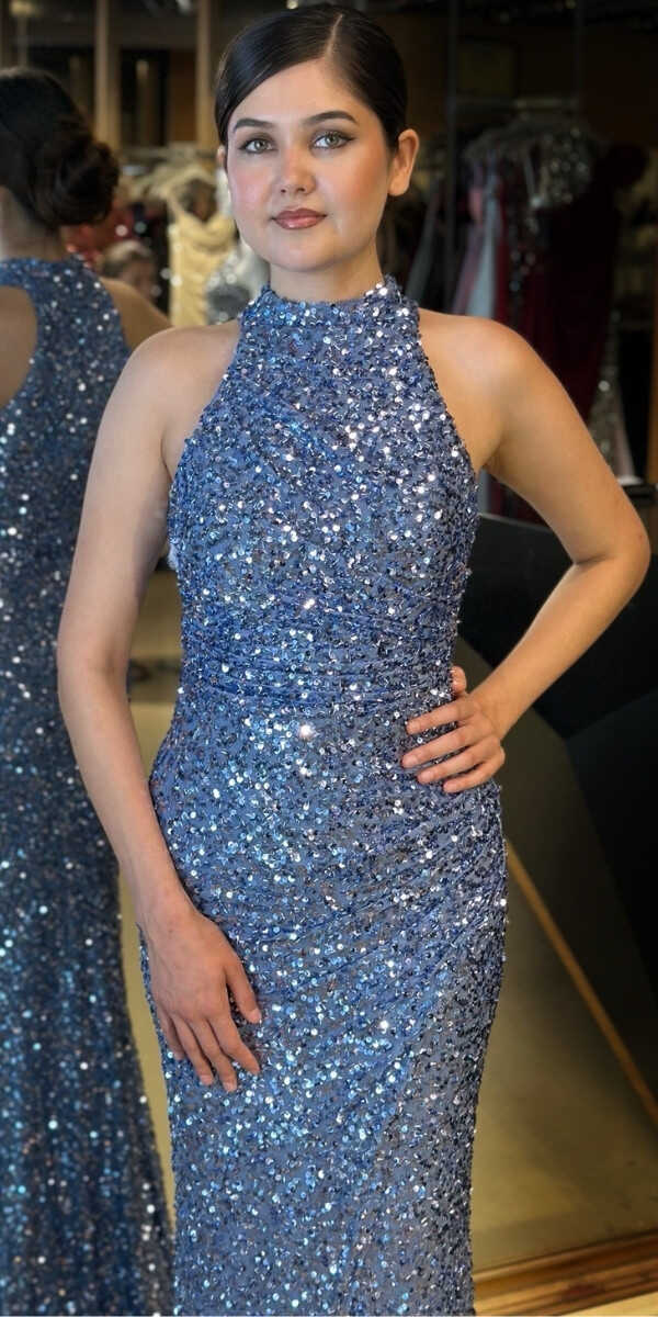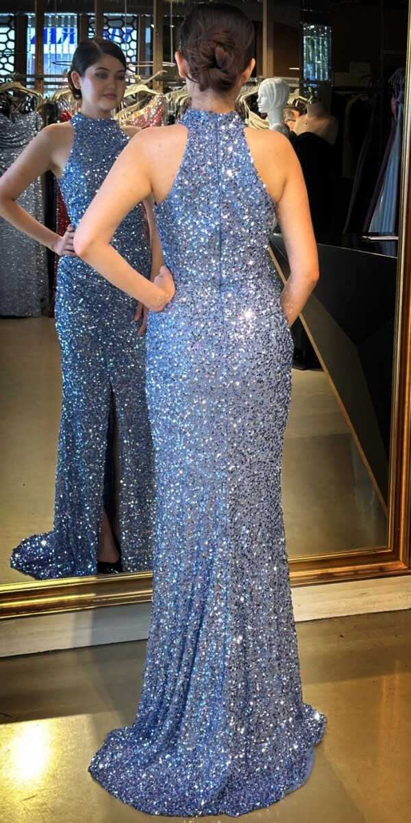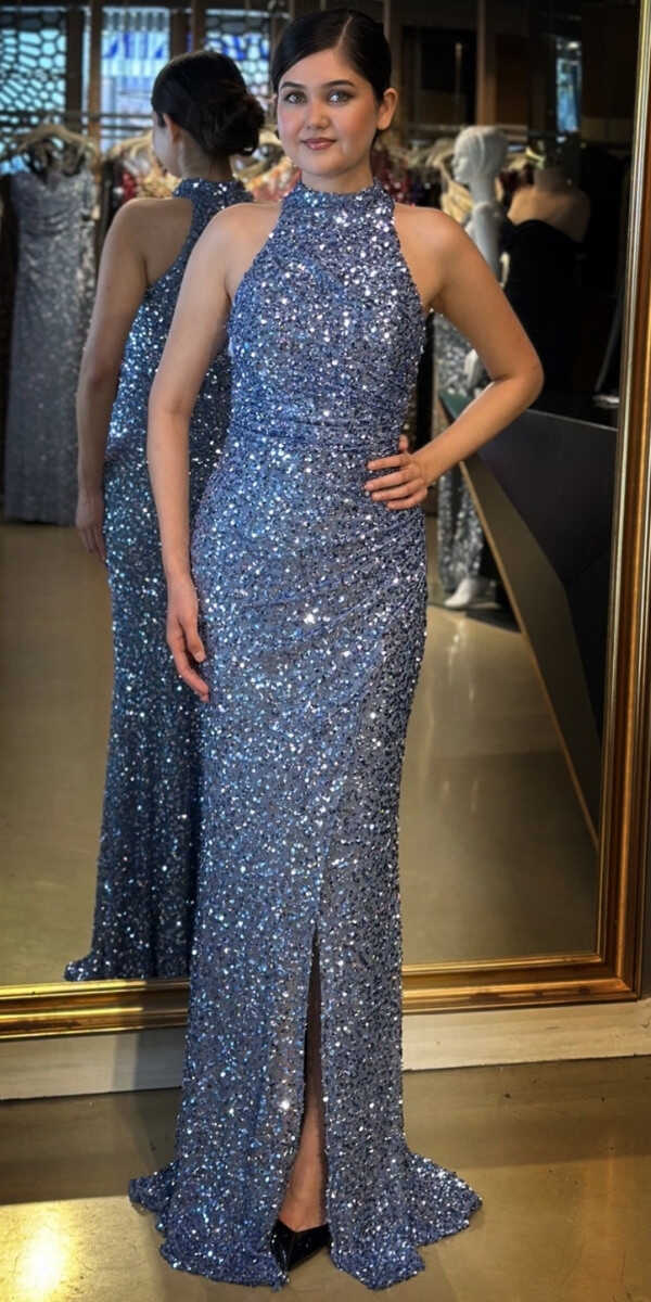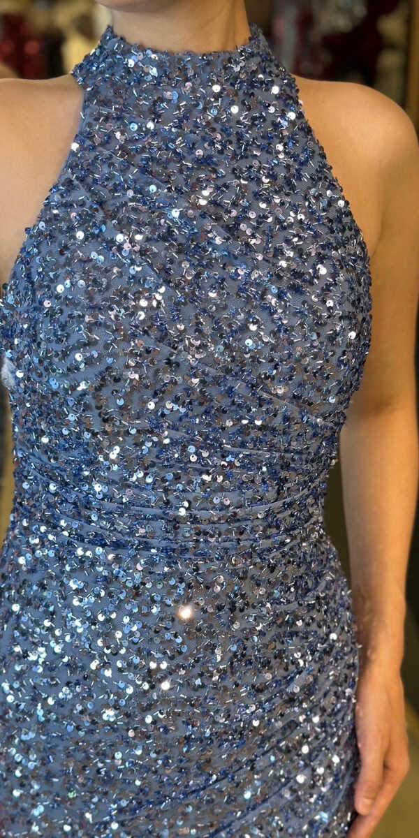 İndigo Renk Düz Kesim Uzun Abiye Elbise, Payet Kumaştan Üretilmiş olup Pırıltısıyla Göz Kamaştıracaktır. Yırtmaç Detayı Cesur ve Çarpıcı Bir Stil Sunacaktır.
