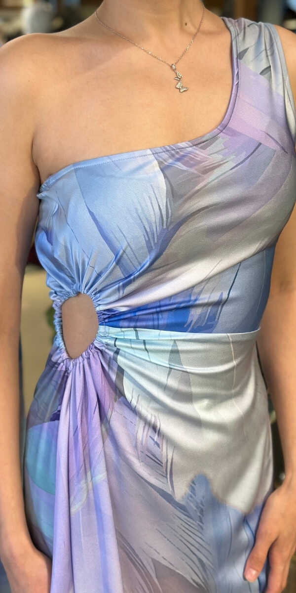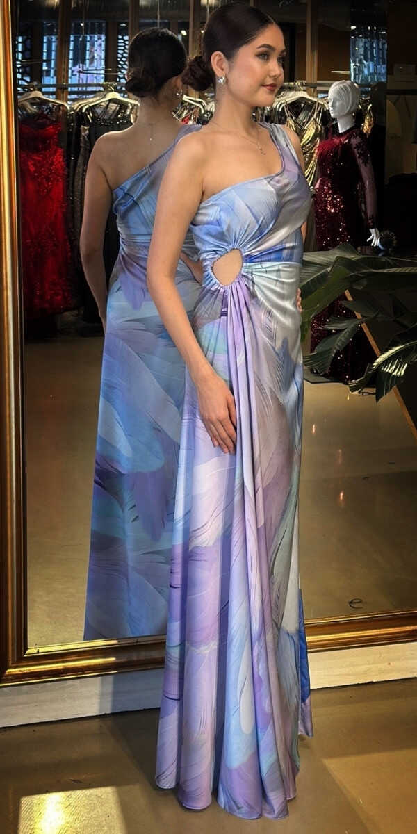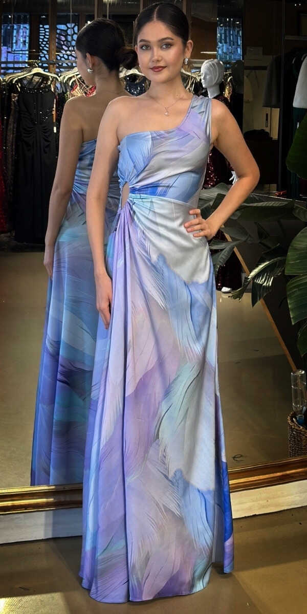 İndigo Renk Kloş Etekli Uzun Abiye Elbise, Saten Kumaştan Üretilmiş olup Satenin Pürüzsüz Işığı Görünümünüze Zarafet Katacaktır. Asimetrik kol formu güçlü bir stil vurgusu yapar. Sizi Olduğunuzdan Zarif Gösterecektir.