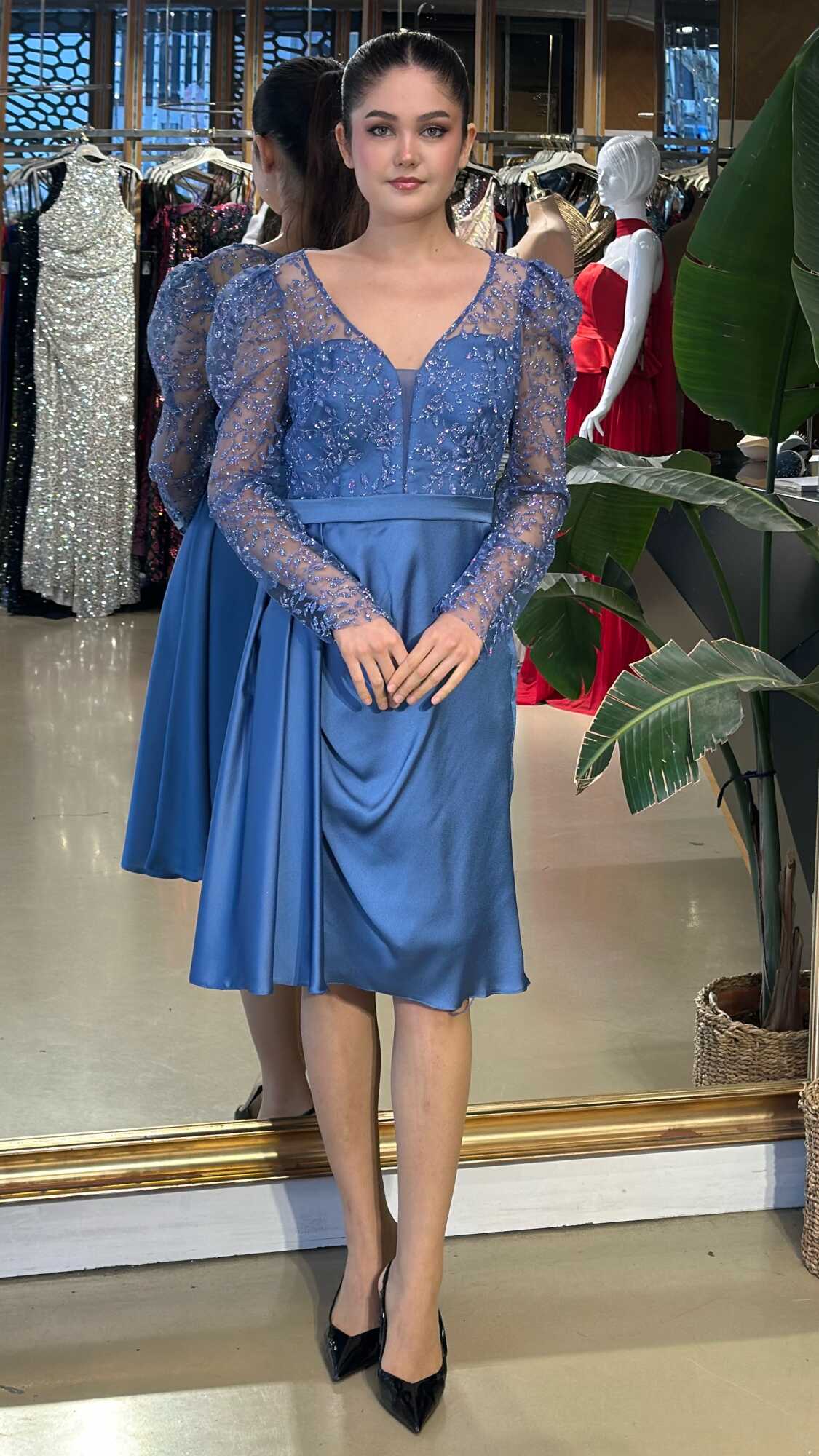 İndirimli İndigo Uzun Kollu Abiye 95119