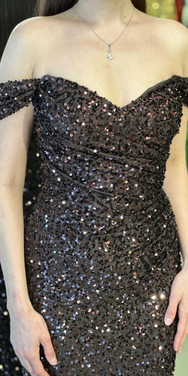 Madonna Yaka Kahverengi Renk Düz Kesim Uzun Abiye Elbise, Payet Kumaştan Üretilmiş olup Pırıltısıyla Göz Kamaştıracaktır. Vücuda uyum sağlayan likralı kumaş, dinamik bir duruş kazandırır.