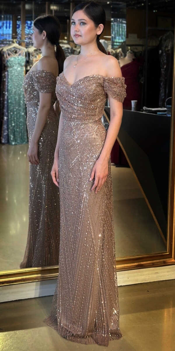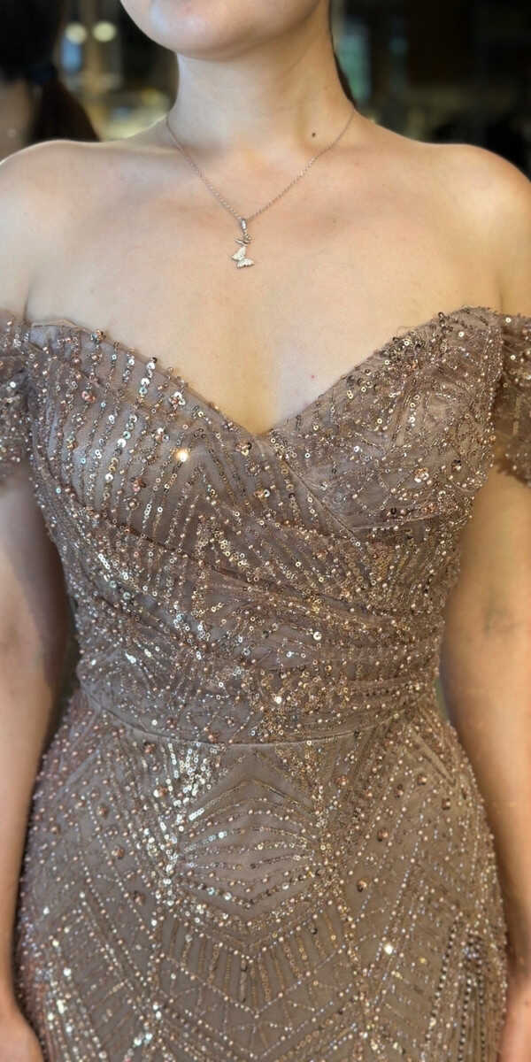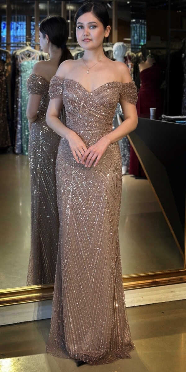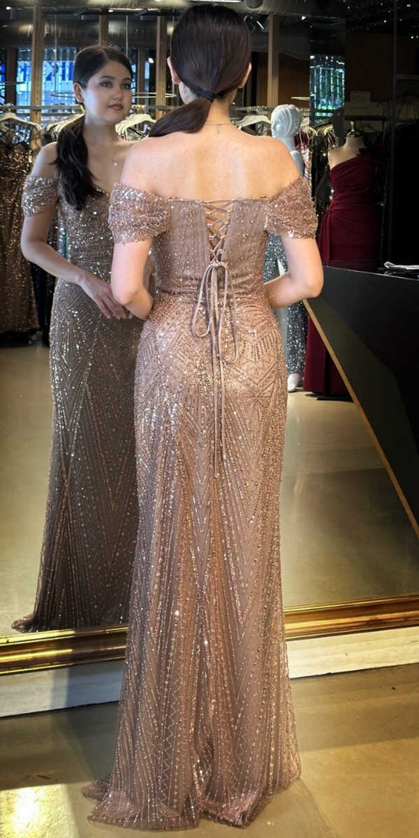 Kahverengi Renk Düz Kesim Uzun Abiye Elbise, Pullu Boncuklu Kumaştan Üretilmiş olup Parıltı ve Zarafetin Buluştuğu Kumaş Türü Sizi Işıl Işıl Gösterecektir. Şık Sırt Dekoltesi Size Çok Yakışacak.