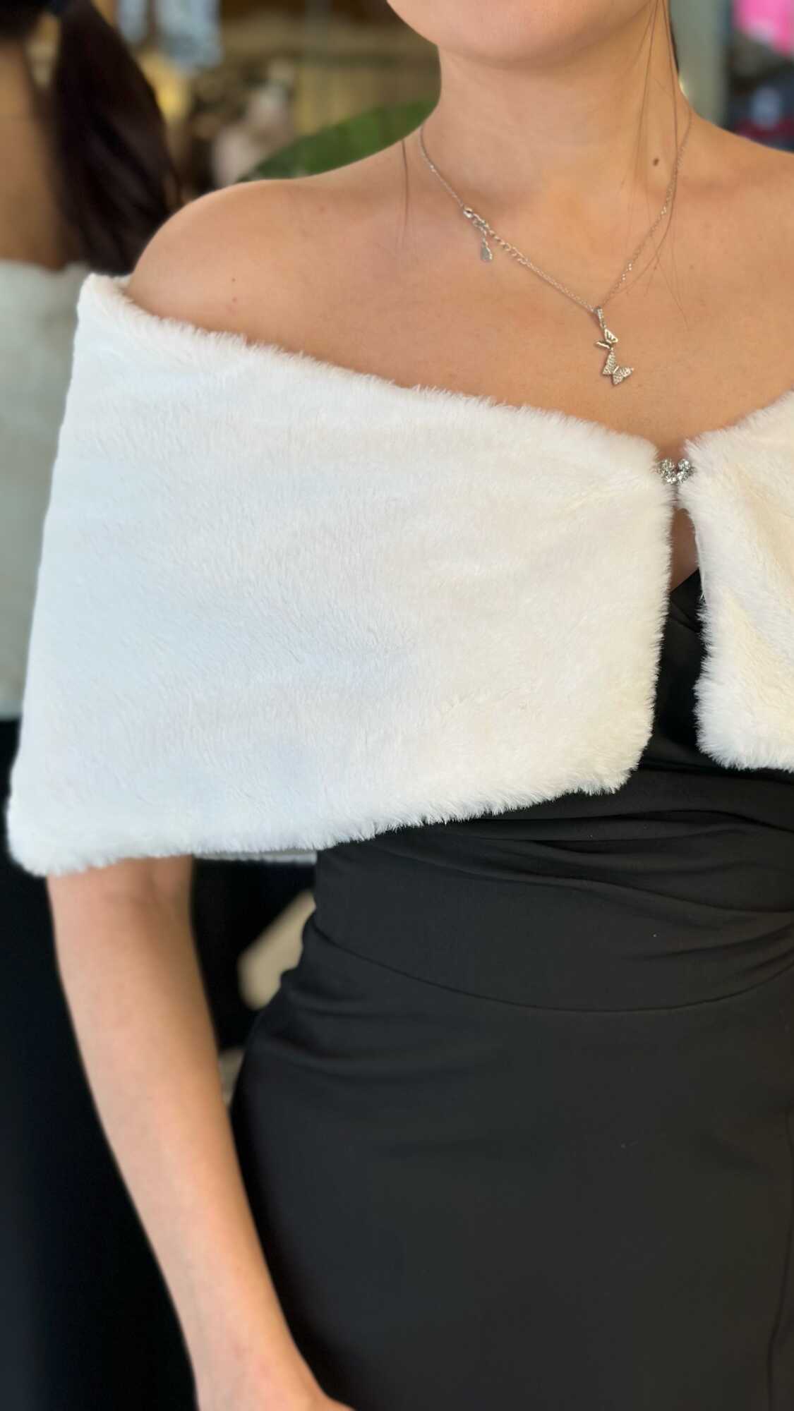Madonna Yaka Kırık Beyaz Renk , Tay Tüyü Kumaştan Üretilmiş olup Dayanıklı ve yumuşak yapısıyla tay tüyü kumaş, stilinize sıcaklık katar.