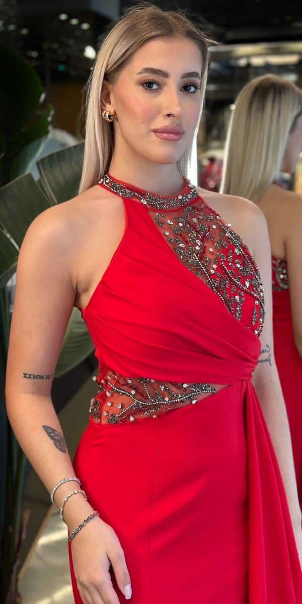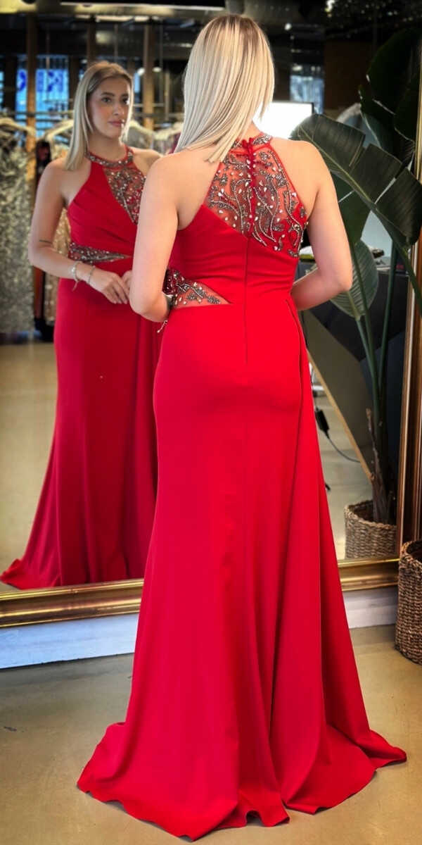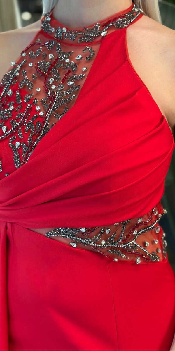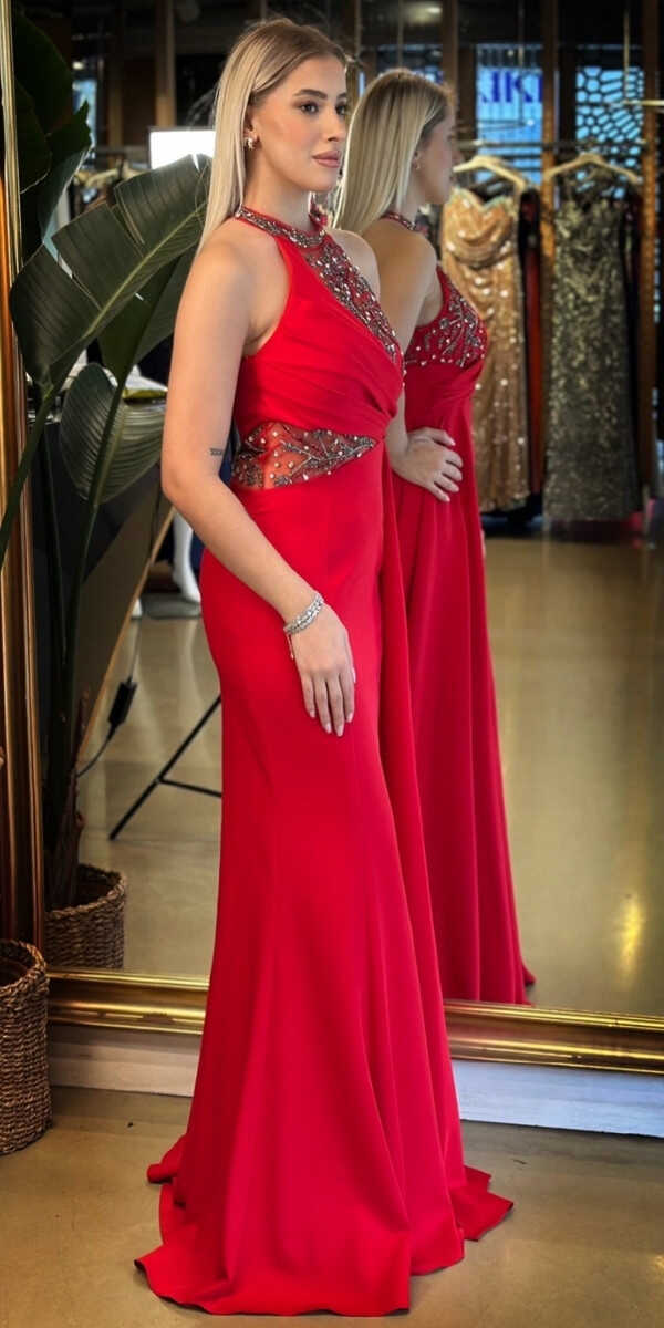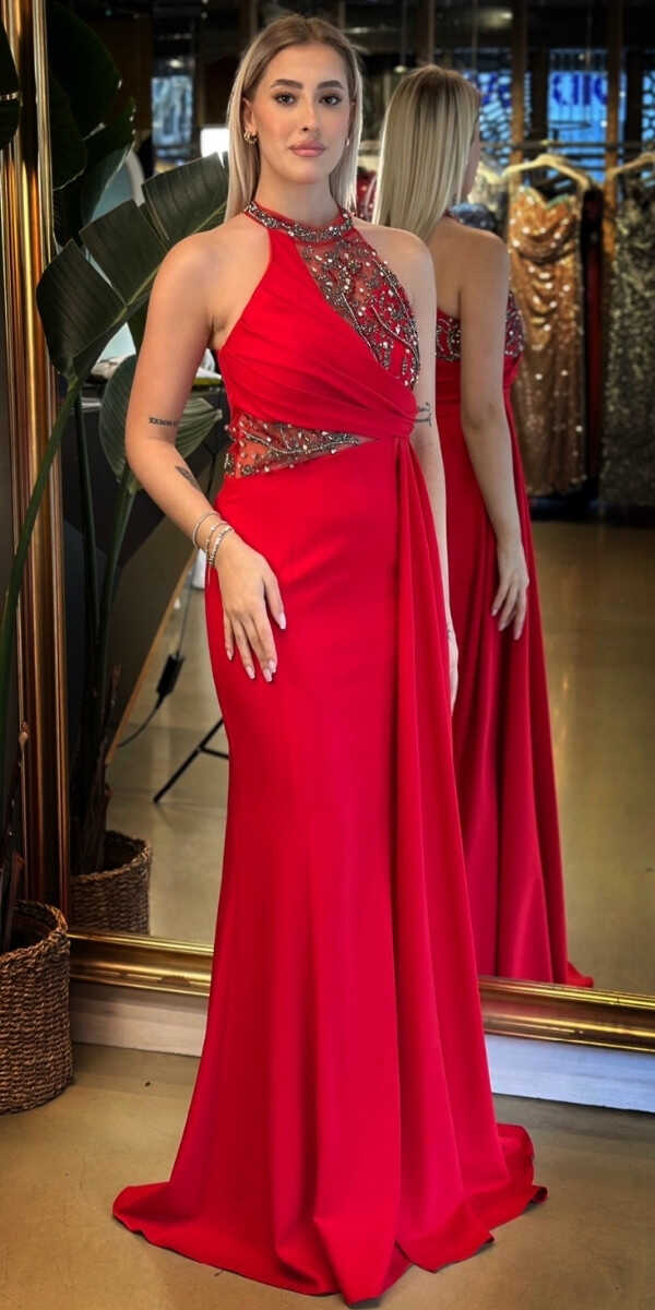 Kırmızı Renk Balık Etekli Uzun Abiye Elbise, Krep Kumaştan Üretilmiş Olup Hafif Ve Daha Az Kırışan Krep Kumaş Sizi Daha Rahat Hissettirecektir.
