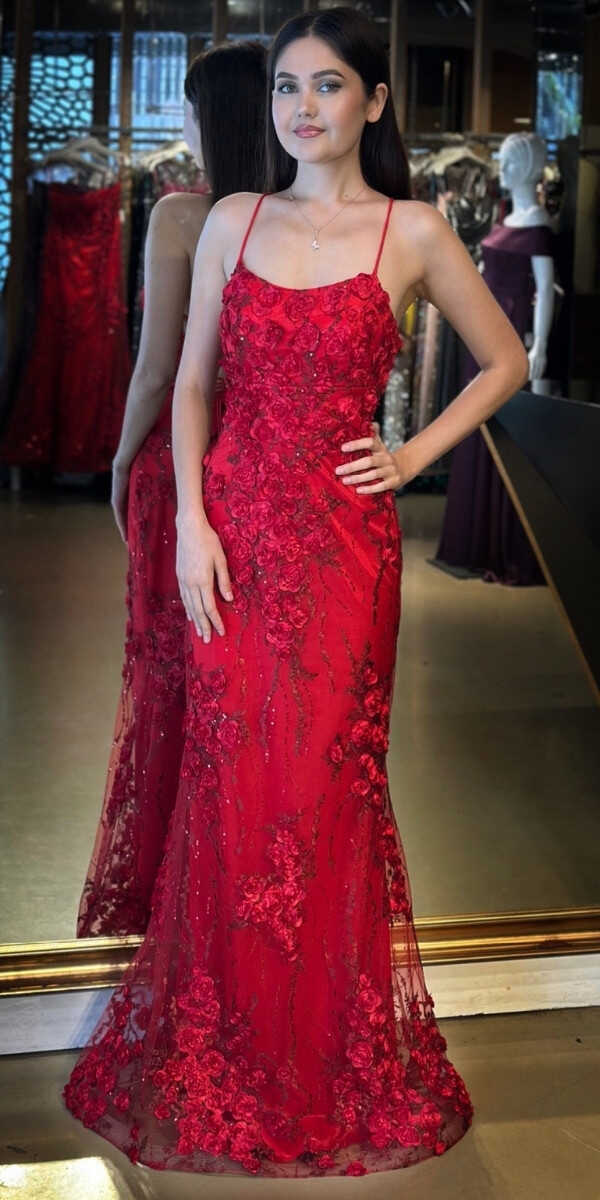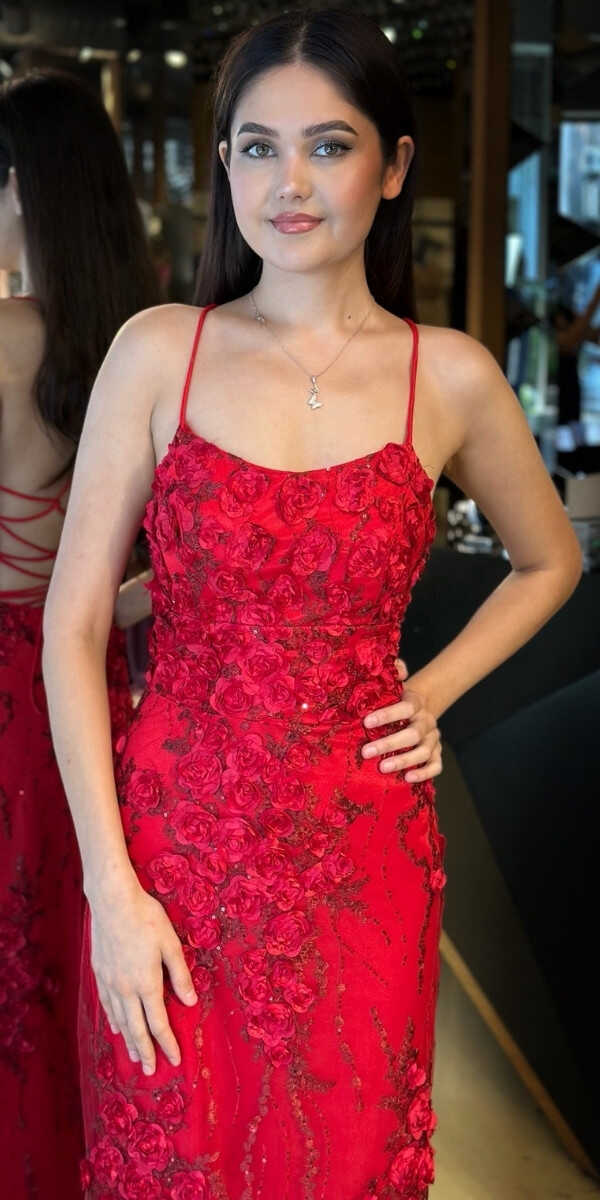 Kırmızı Renk Düz Kesim Uzun Abiye Elbise, Tül Kumaştan Üretilmiş olup Hafif Olmasından Kaynaklı Sizi Gece Boyu Rahat Hissettirecek. Elbisedeki İp Askılar Kullanım Kolaylığı Yaratacaktır. Çiçek Detayı Modern Bir Görünüm Yaratacaktır.. Şık Sırt Dekoltesi Size Çok Yakışacak.