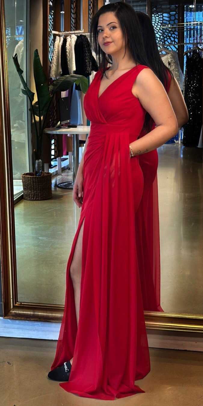 Kırmızı Renk Düz Kesim Uzun Abiye Elbise, Likralı Kumaştan Üretilmiş Olup Rahatlık Seviyesini Arttıran, Çok Konforlu, Pürüzsüz, Yumuşak Olmasıyla Tüm Gününüzün Kalitesini Arttıracaktır.. Yırtmaç Detayı Cesur ve Çarpıcı Bir Stil Sunacaktır.