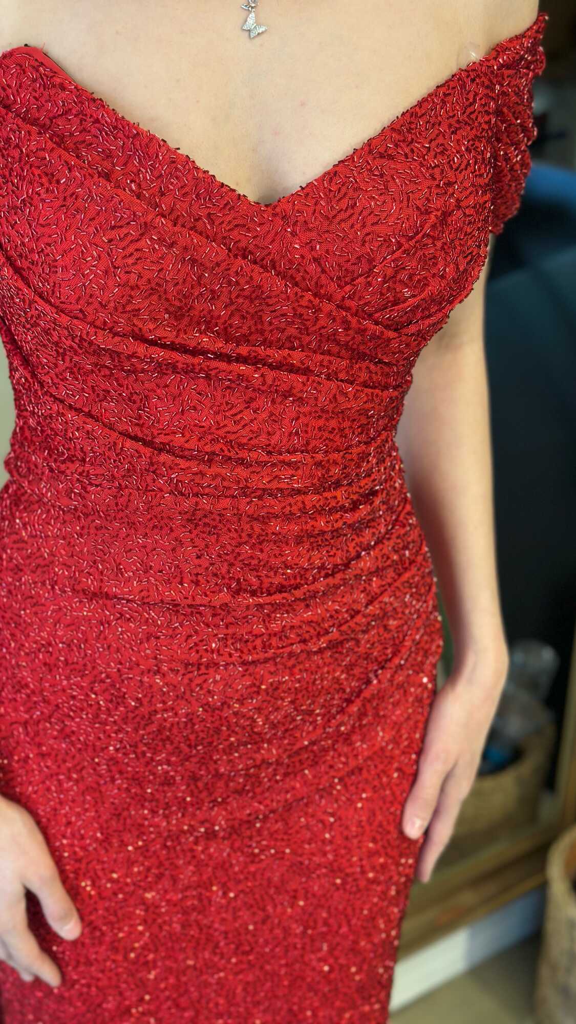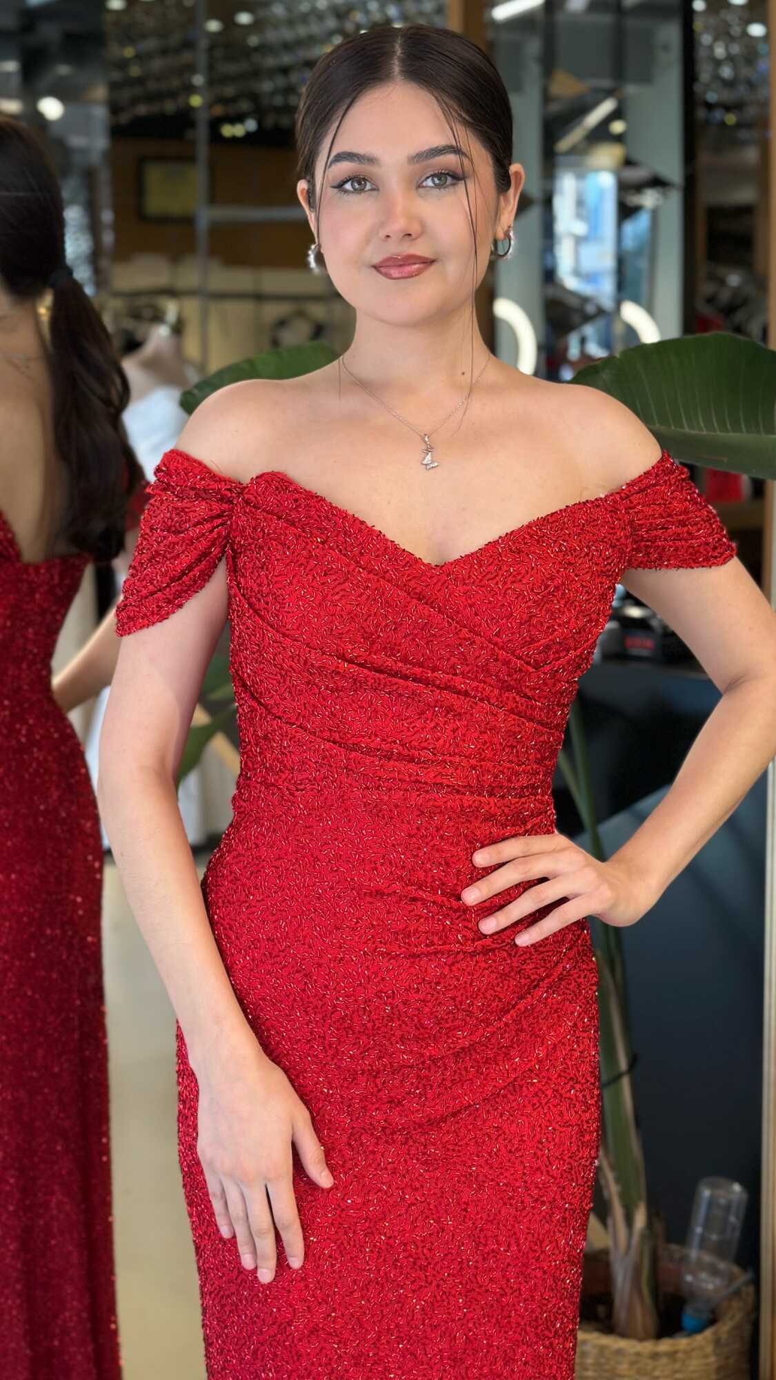Gelince Haber VerMadonna Yaka Kırmızı Renk Düz Kesim Uzun Abiye Elbise, Pullu Boncuklu Kumaştan Üretilmiş olup Parıltı ve Zarafetin Buluştuğu Kumaş Türü Sizi Işıl Işıl Gösterecektir. Vücuda uyum sağlayan likralı kumaş, dinamik bir duruş kazandırır.