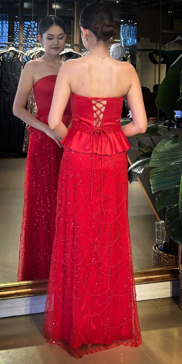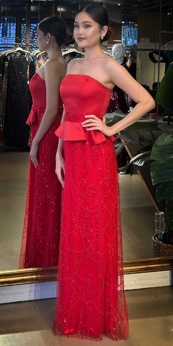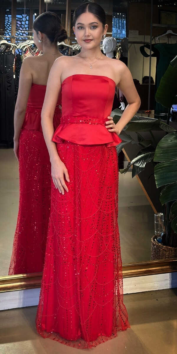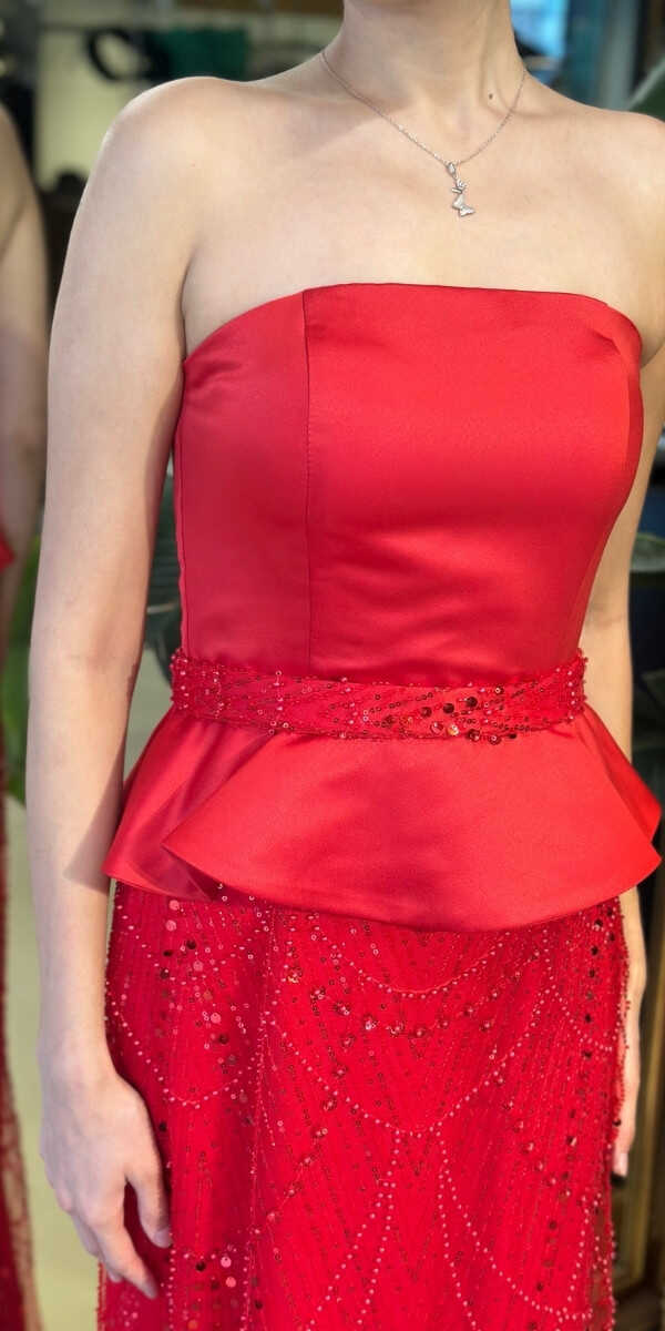 Gelince Haber VerStraplez Yaka Kırmızı Renk Düz Kesim Uzun Abiye Elbise, Pullu Boncuklu Kumaştan Üretilmiş olup Parıltı ve Zarafetin Buluştuğu Kumaş Türü Sizi Işıl Işıl Gösterecektir. Bel Kemeri Belinizi İncelterek Sizi Daha İnce Gösterecektir. Şık Sırt Dekoltesi Size Çok Yakışacak.