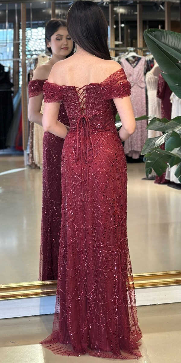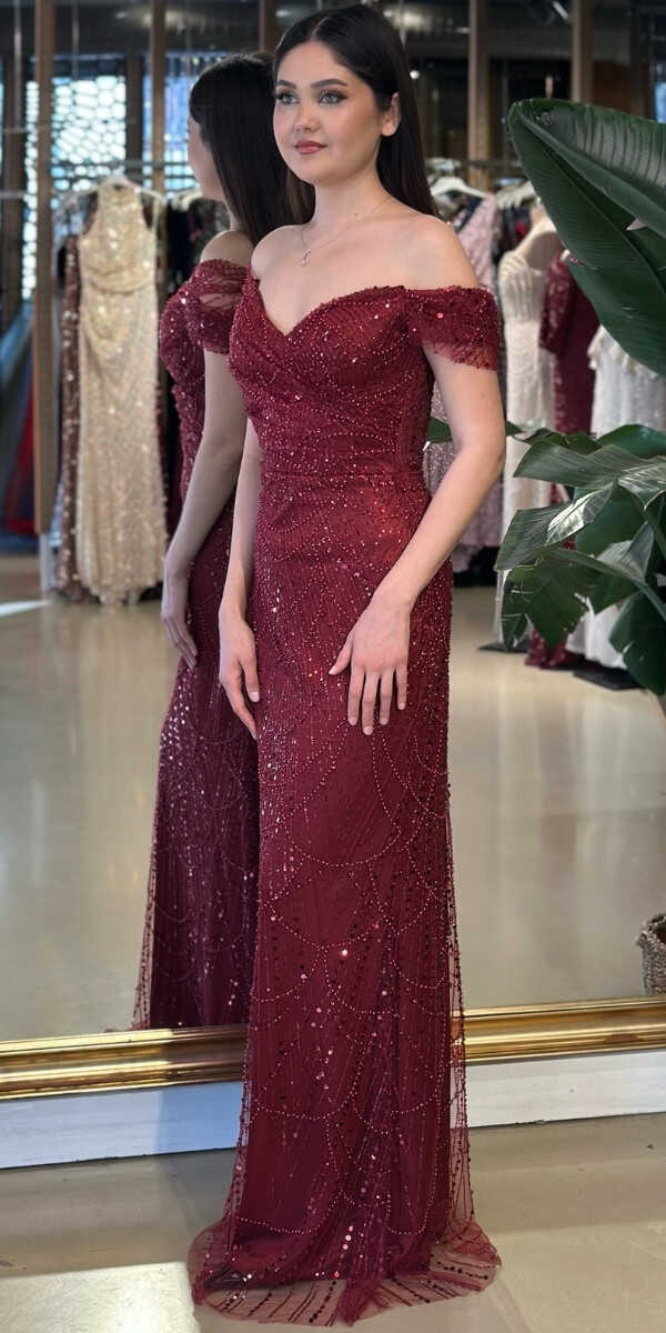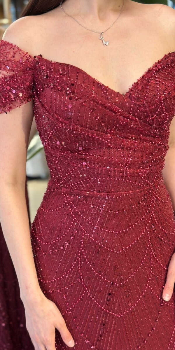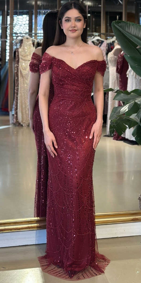 Madonna Yaka Koyu Bordo Renk Düz Kesim Uzun Abiye Elbise, Pullu Boncuklu Kumaştan Üretilmiş olup Parıltı ve Zarafetin Buluştuğu Kumaş Türü Sizi Işıl Işıl Gösterecektir. Şık Sırt Dekoltesi Size Çok Yakışacak.