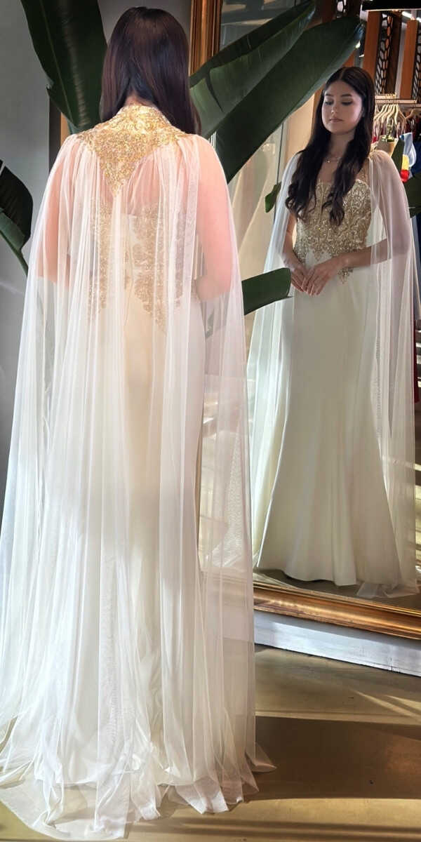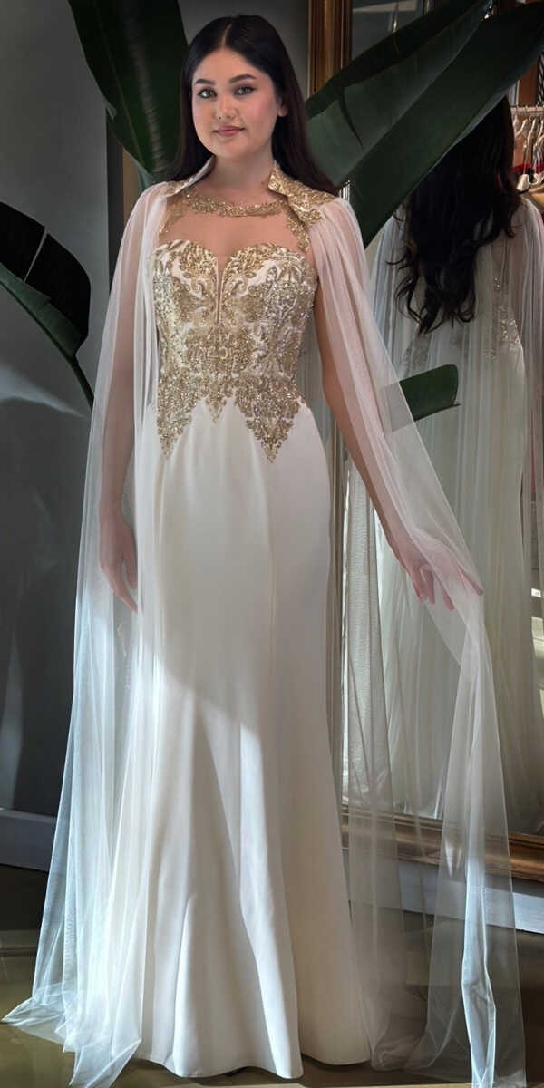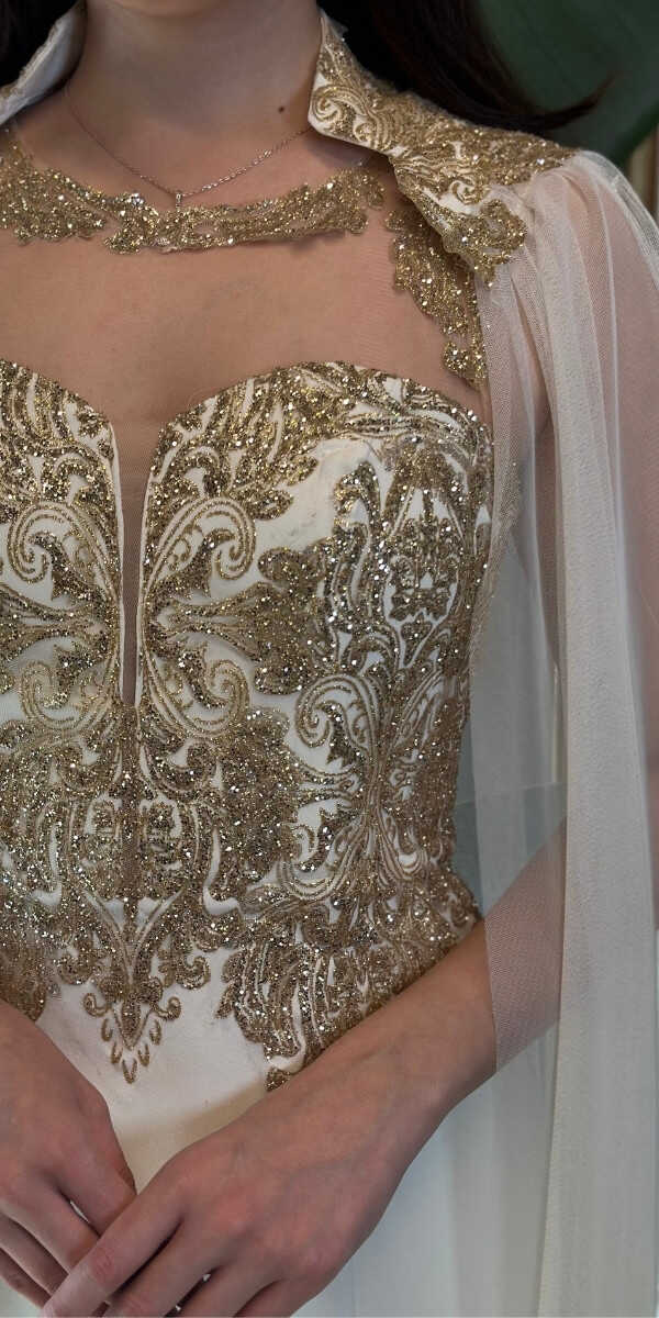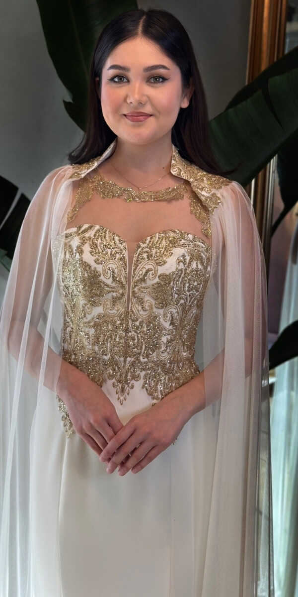 Krem Renk Balık Etekli Uzun Abiye Elbise, Krep Kumaştan Üretilmiş Olup Hafif Ve Daha Az Kırıştığı İçin Sizi Rahat Hissettirecektir.