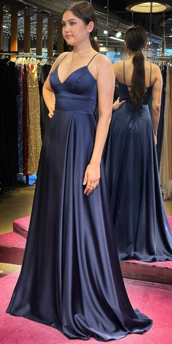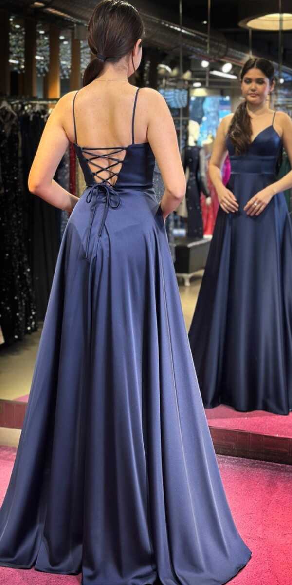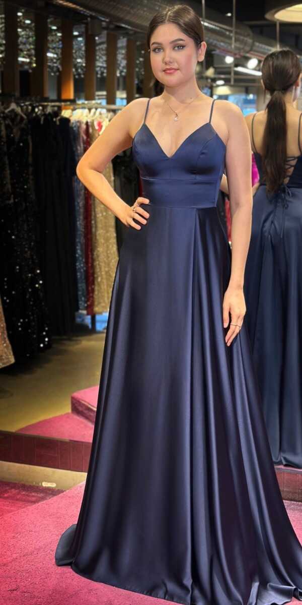 Lacivert Renk Kloş Etekli Uzun Abiye Elbise, Saten Kumaştan Üretilmiş Olup Satenin Pürüzsüz Işığı Görünümünüze Zarafet Katacaktır.. Elbisedeki İp Askılar Kullanım Kolaylığı Yaratacaktır Şık Sırt Dekoltesi Size Çok Yakışacak. Adeta Göz Kamaştıran Bir Görünüm Yaratacak..