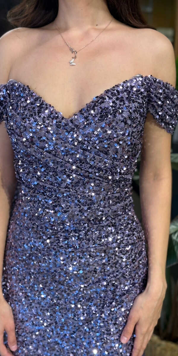 Madonna Yaka Lavanta Renk Düz Kesim Uzun Abiye Elbise, Payet Kumaştan Üretilmiş olup Pırıltısıyla Göz Kamaştıracaktır. Vücuda uyum sağlayan likralı kumaş, dinamik bir duruş kazandırır.