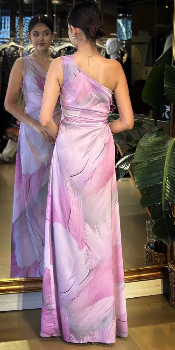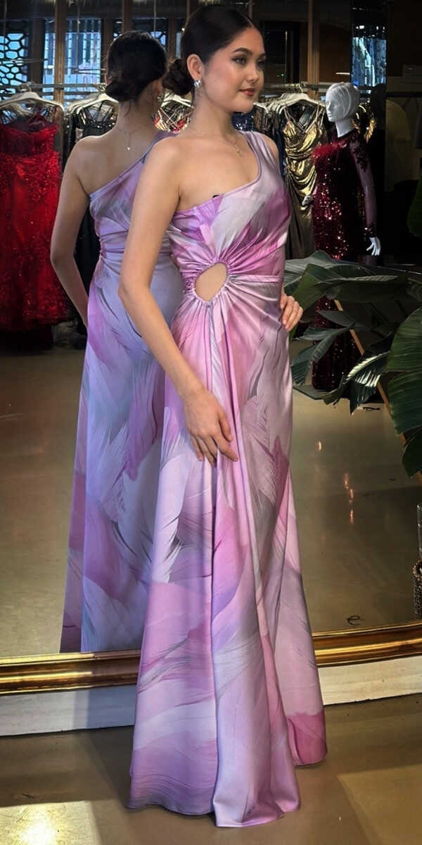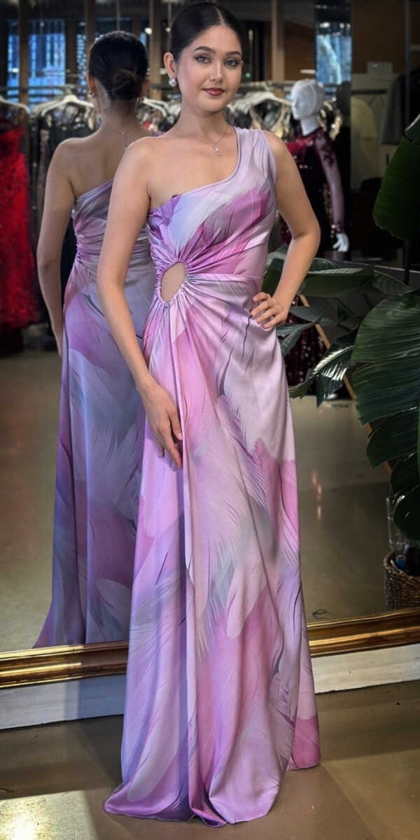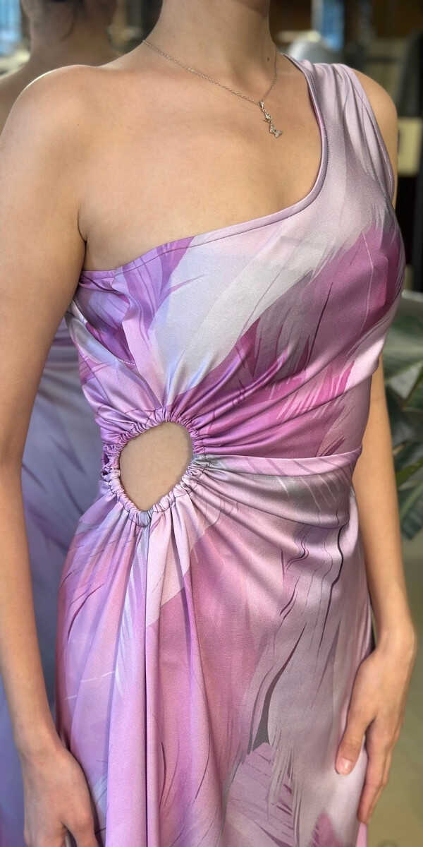 Lavanta Renk Kloş Etekli Uzun Abiye Elbise, Saten Kumaştan Üretilmiş olup Satenin Pürüzsüz Işığı Görünümünüze Zarafet Katacaktır. Asimetrik kol formu güçlü bir stil vurgusu yapar. Sizi Olduğunuzdan Zarif Gösterecektir.
