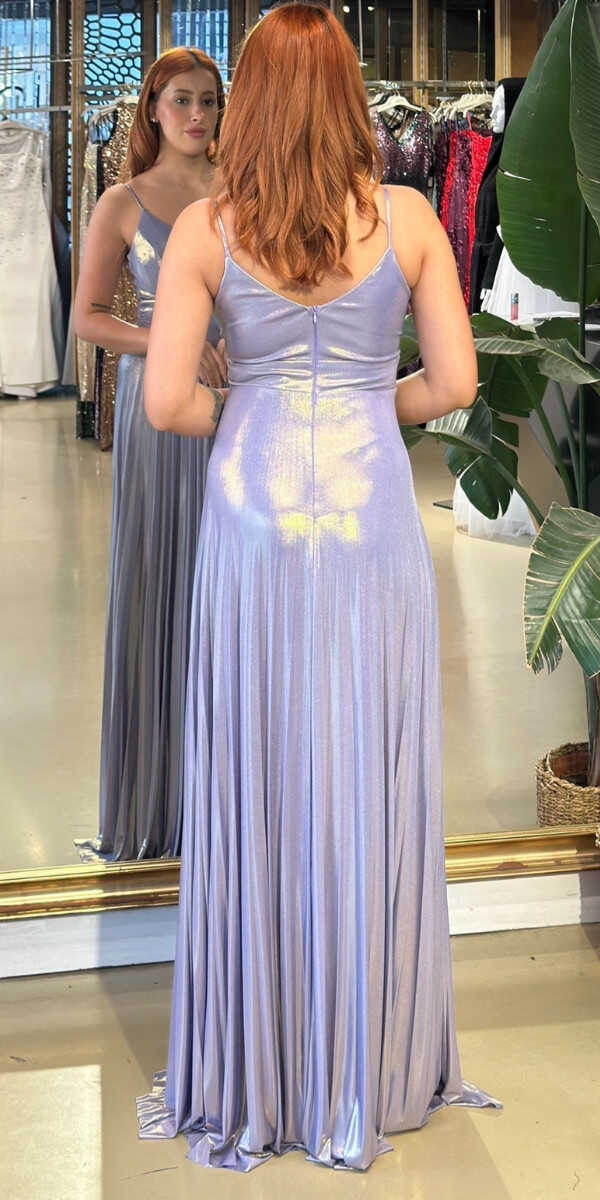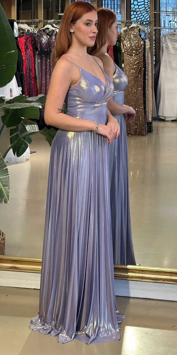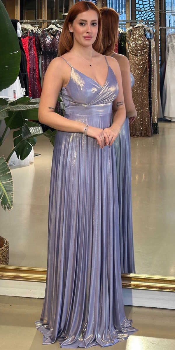 V Yaka Lila Renk Kloş Etekli Uzun Abiye Elbise, Parlak Kumaş Kumaştan Üretilmiş olup Parlak dokusu sayesinde her adımda ışıltınızı yansıtın. Elbisedeki İp Askılar Kullanım Kolaylığı Yaratacaktır.