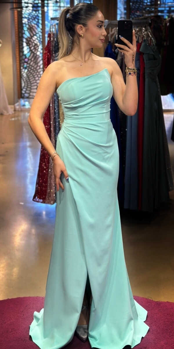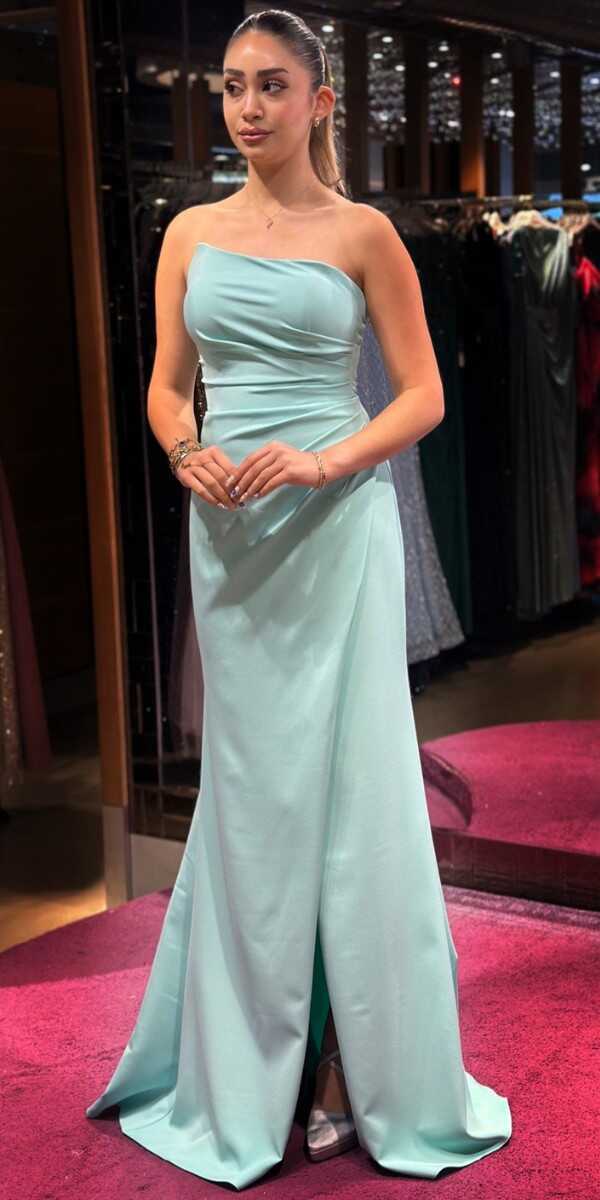 Mint Renk Düz Kesim Uzun Abiye Elbise, Krep Kumaştan Üretilmiş Olup Hafif Ve Az Kırıştığı İçin Sizi Daha Rahat Hissettirecektir. Adeta Göz Kamaştıran Bir Görünüm Yaratacak.