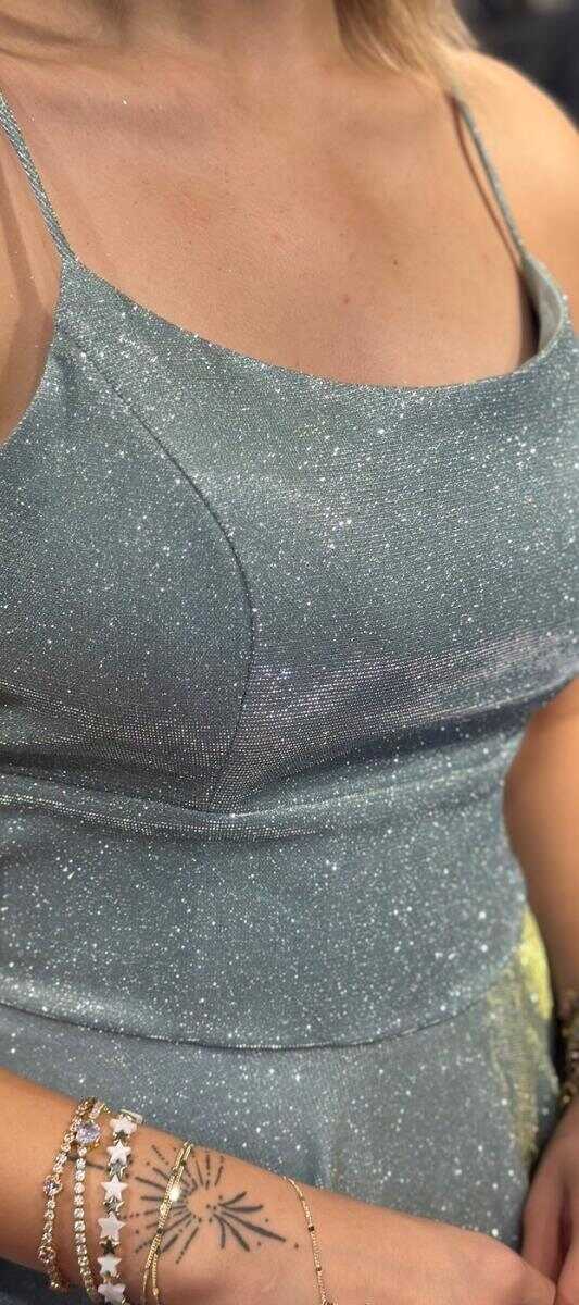Mint Renk Kloş Etekli Uzun Abiye Elbise, Simli Kumaştan Üretilmiş Olup Simlerin Işıltısıyla Çok Hoş Gözükeceksiniz Elbisedeki İp Askılar Kullanım Kolaylığı Yaratacaktır. Şık Sırt Dekoltesi Size Çok Yakışacak.