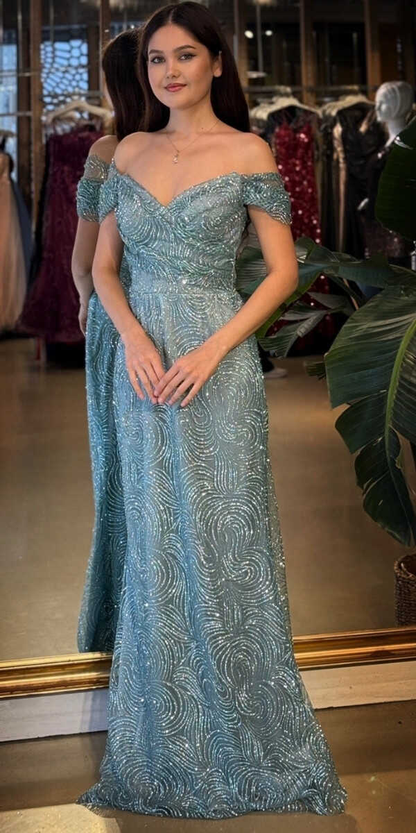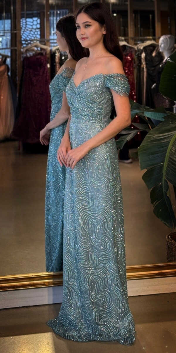 Madonna Yaka Mint Renk Düz Kesim Uzun Abiye Elbise, Simli Kumaştan Üretilmiş olup Simlerin Işıltısıyla Çok Hoş Gözükeceksiniz. Şık Sırt Dekoltesi Size Çok Yakışacak.