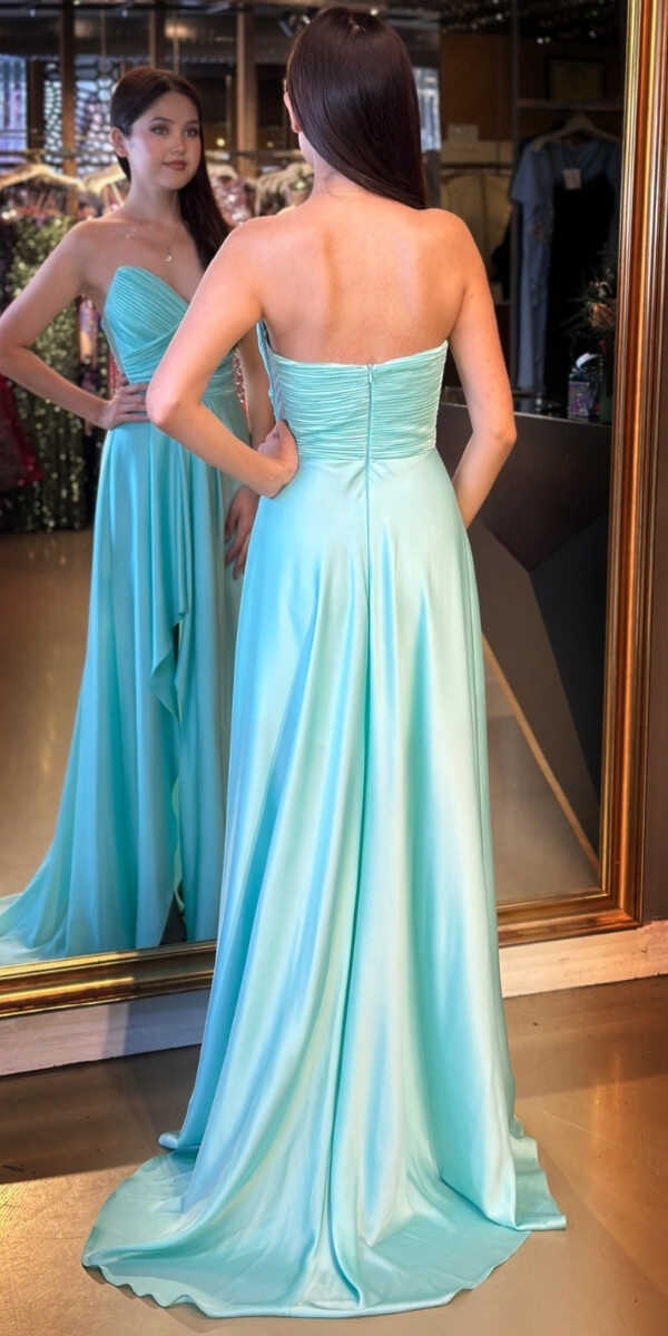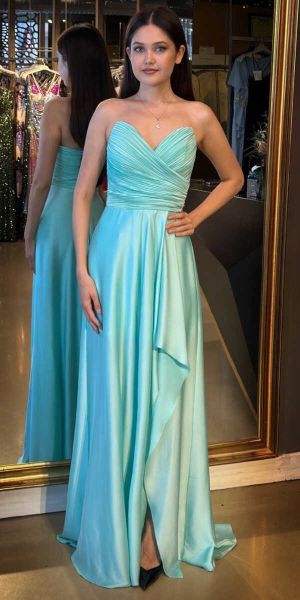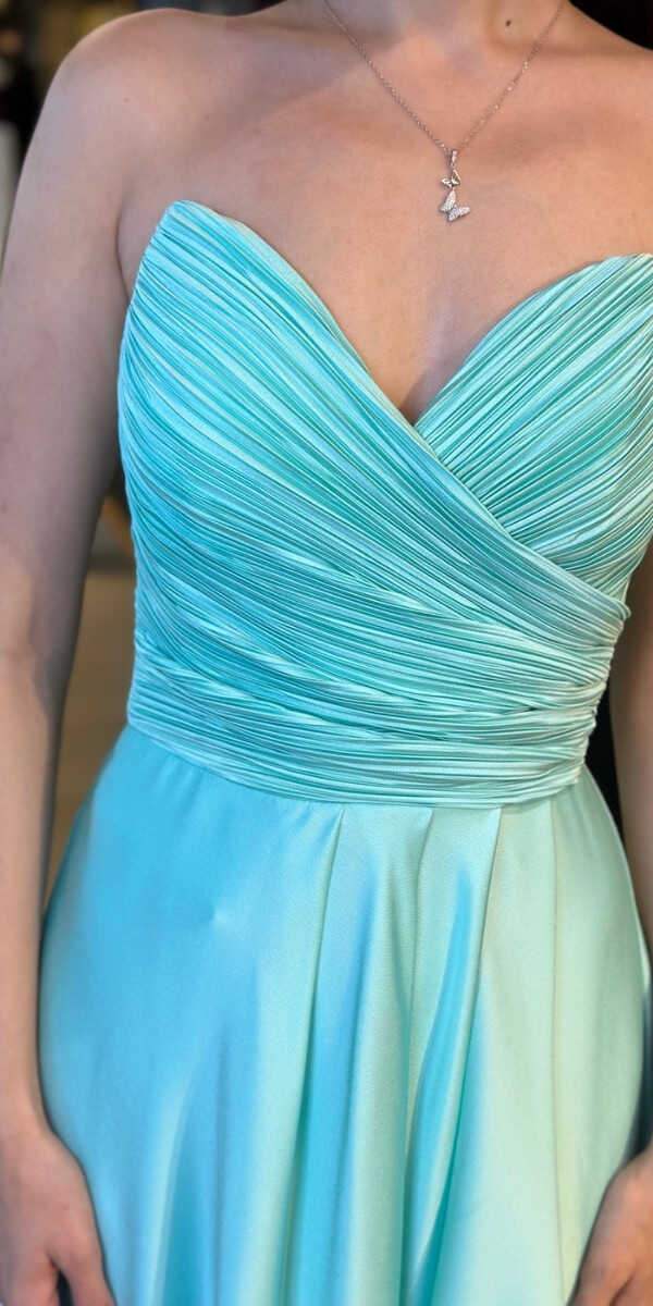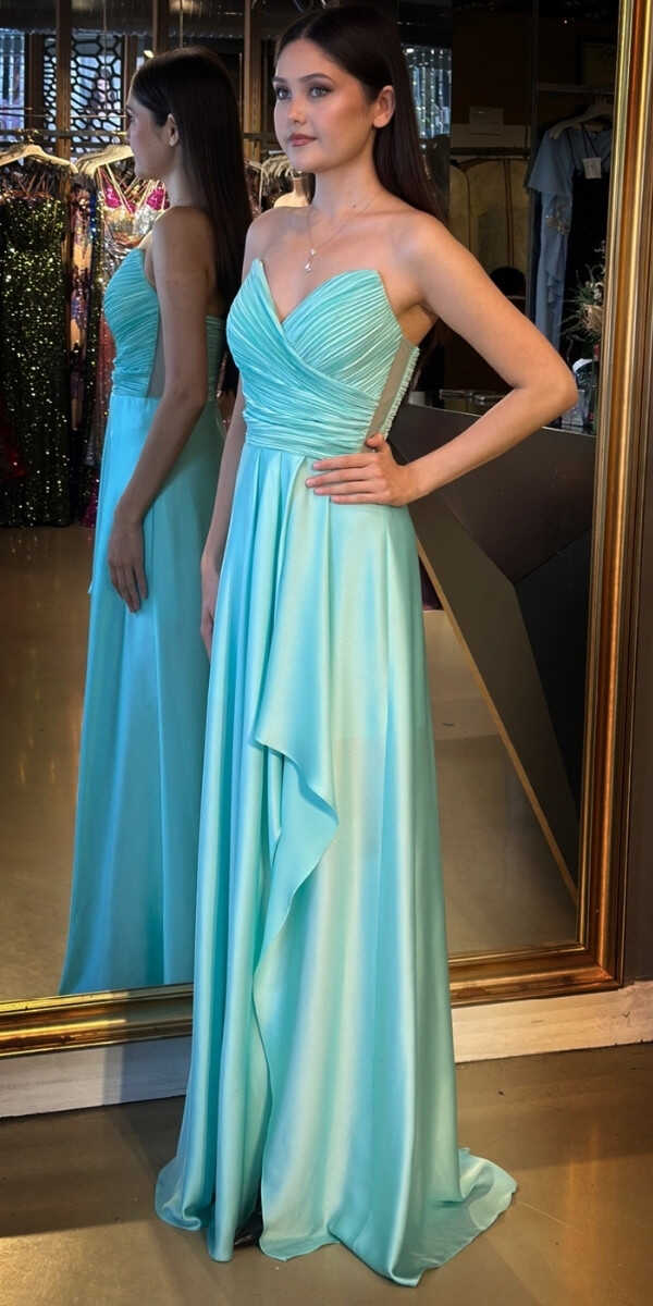 Mint Renk Kloş Etekli Uzun Abiye Elbise, Saten Kumaştan Üretilmiş olup Satenin Pürüzsüz Işığı Görünümünüze Zarafet Katacaktır. Adeta Göz Kamaştıran Bir Görünüm Yaratacak.