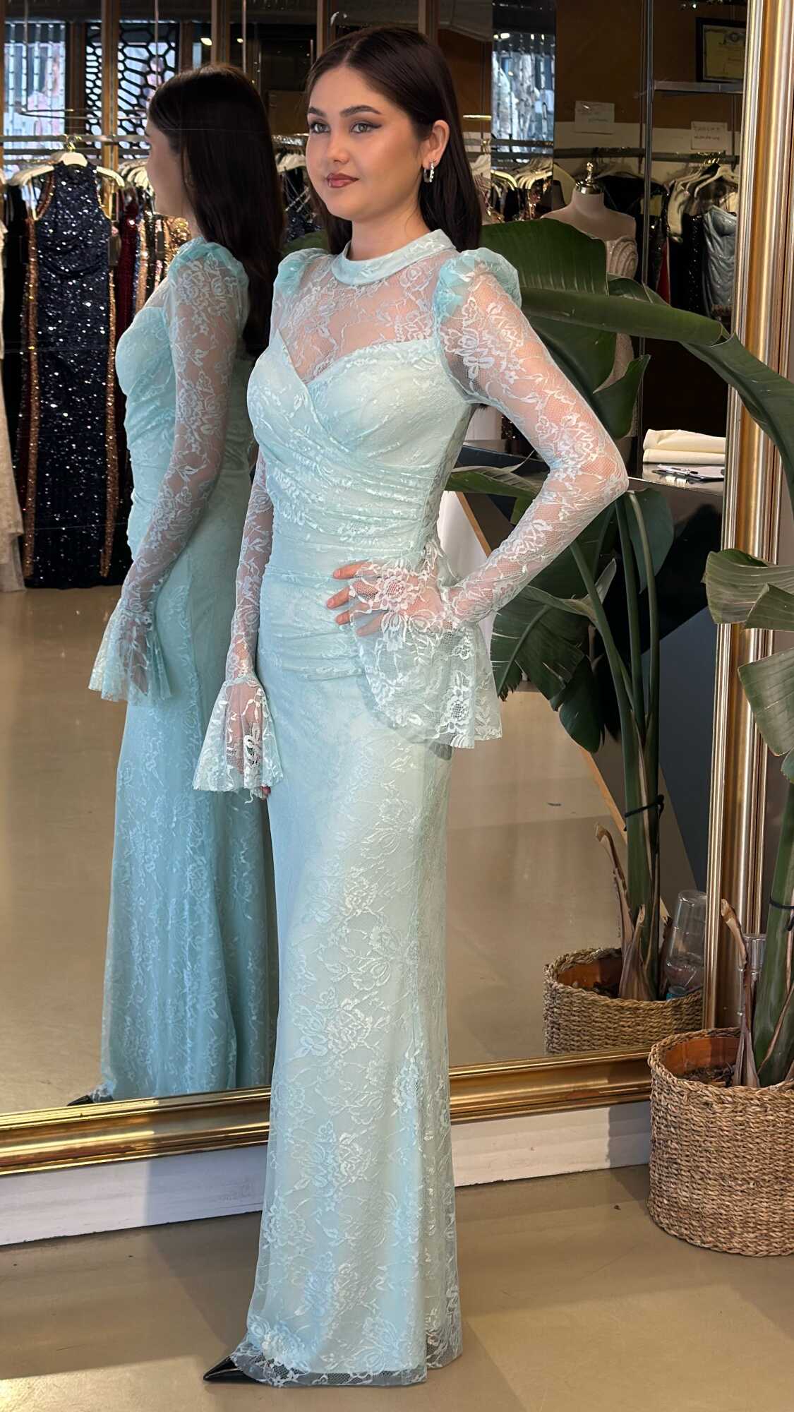 Gelince Haber VerMint Renk Düz Kesim Uzun Abiye Elbise, Dantel Kumaştan Üretilmiş olup Daha Resmi Gözükmek İstediğiniz Özel Günlerinizde Sizlere Eşlik Edecektir. Vücuda uyum sağlayan likralı kumaş, dinamik bir duruş kazandırır. Uzun kollarıyla, kollarınızı zarif bir şekilde kapatır.