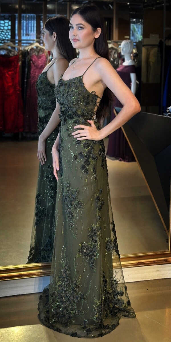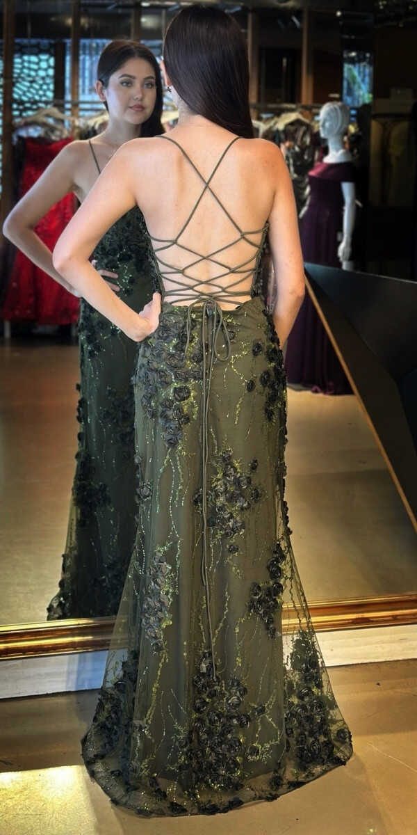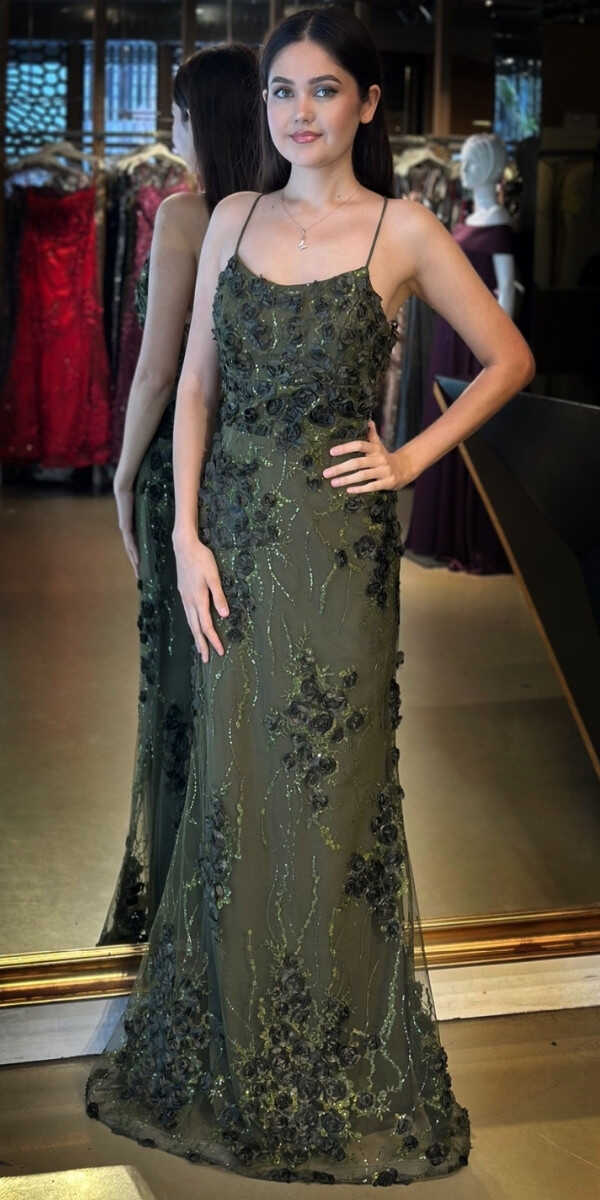 Olive Renk Düz Kesim Uzun Abiye Elbise, Tül Kumaştan Üretilmiş olup Hafif Olmasından Kaynaklı Sizi Gece Boyu Rahat Hissettirecek. Elbisedeki İp Askılar Kullanım Kolaylığı Yaratacaktır. Çiçek Detayı Modern Bir Görünüm Yaratacaktır.. Şık Sırt Dekoltesi Size Çok Yakışacak.