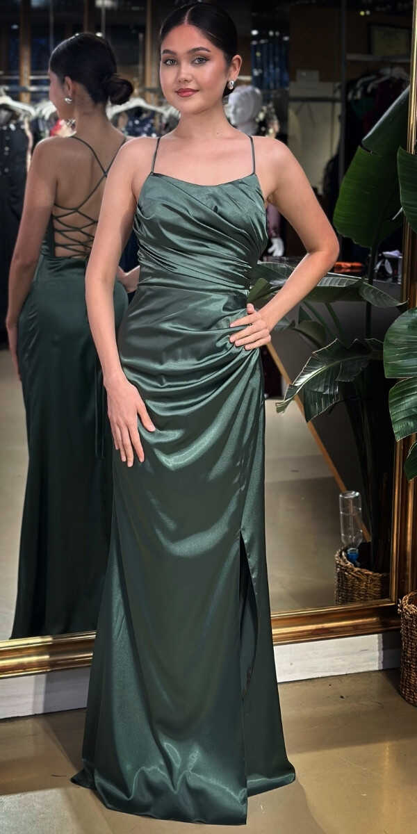 Gelince Haber VerYuvarlak Yaka Olive Renk Düz Kesim Uzun Abiye Elbise, Saten Kumaştan Üretilmiş olup Satenin Pürüzsüz Işığı Görünümünüze Zarafet Katacaktır. Elbisedeki İp Askılar Kullanım Kolaylığı Yaratacaktır. Şık Sırt Dekoltesi Size Çok Yakışacak. Yırtmaç Detayı Cesur ve Çarpıcı Bir Stil Sunacaktır.