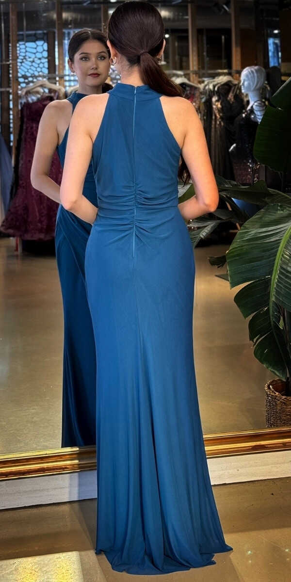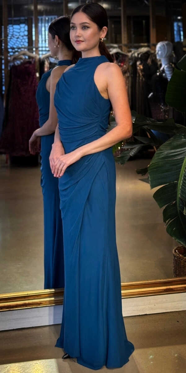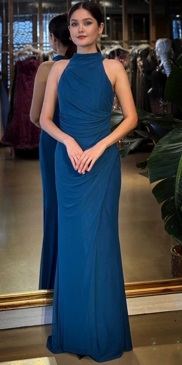 Halter Yaka Petrol Renk Renk Düz Kesim Uzun Abiye Elbise, Tül Kumaştan Üretilmiş olup Hafif Olmasından Kaynaklı Sizi Gece Boyu Rahat Hissettirecek. Vücuda uyum sağlayan likralı kumaş, dinamik bir duruş kazandırır. Yırtmaç Detayı Cesur ve Çarpıcı Bir Stil Sunacaktır.
