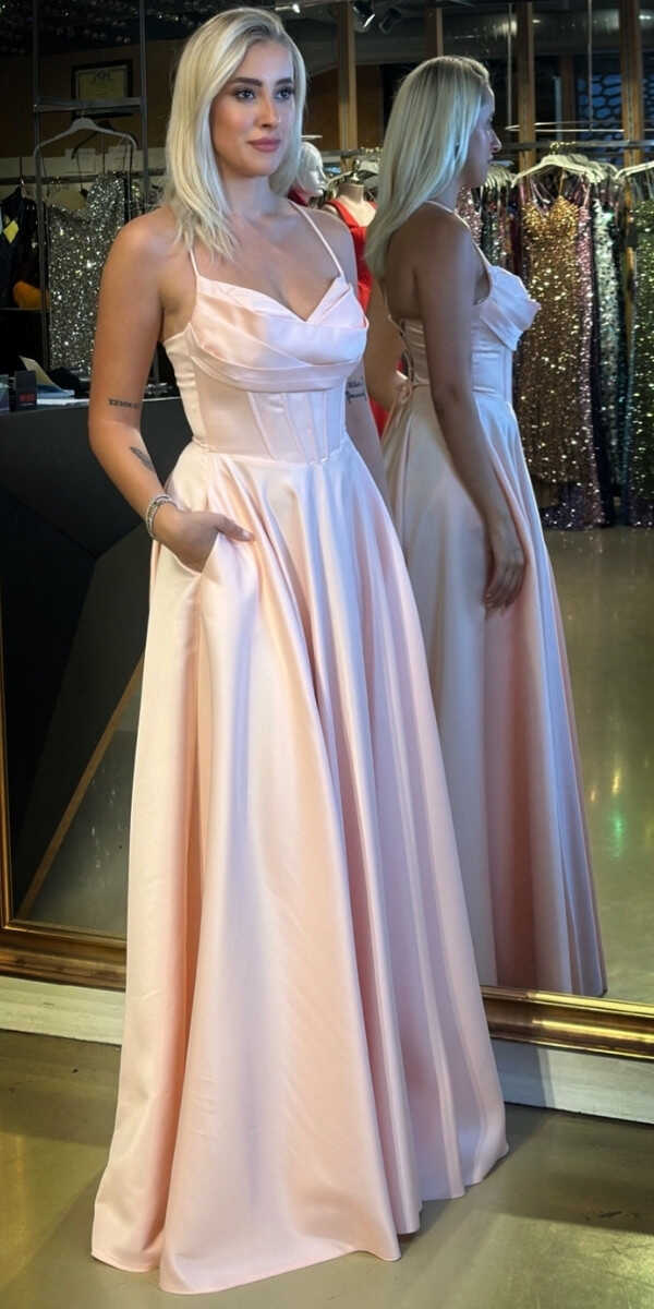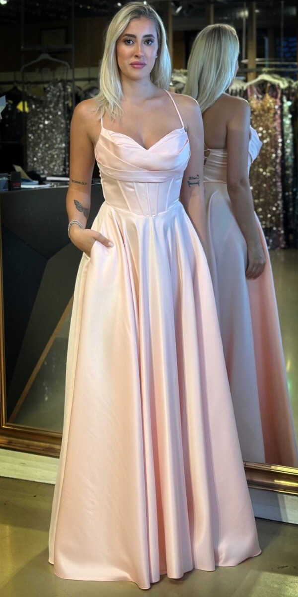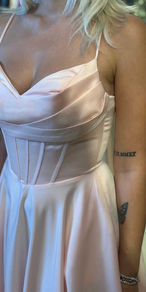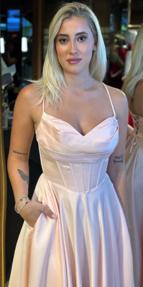 Pudra Renk Renk Kloş Etekli Uzun Abiye Elbise, Saten Kumaştan Üretilmiş olup Satenin Pürüzsüz Işığı Görünümünüze Zarafet Katacaktır. Elbisedeki İp Askılar Kullanım Kolaylığı Yaratacaktır. Şık Sırt Dekoltesi Size Çok Yakışacak.