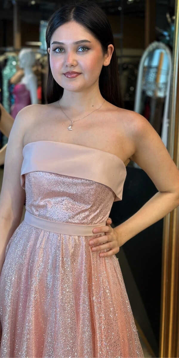 Pudra Renk Renk Kloş Etekli Uzun Abiye Elbise, Tül Kumaştan Üretilmiş olup Hafif Olmasından Kaynaklı Sizi Gece Boyu Rahat Hissettirecek.