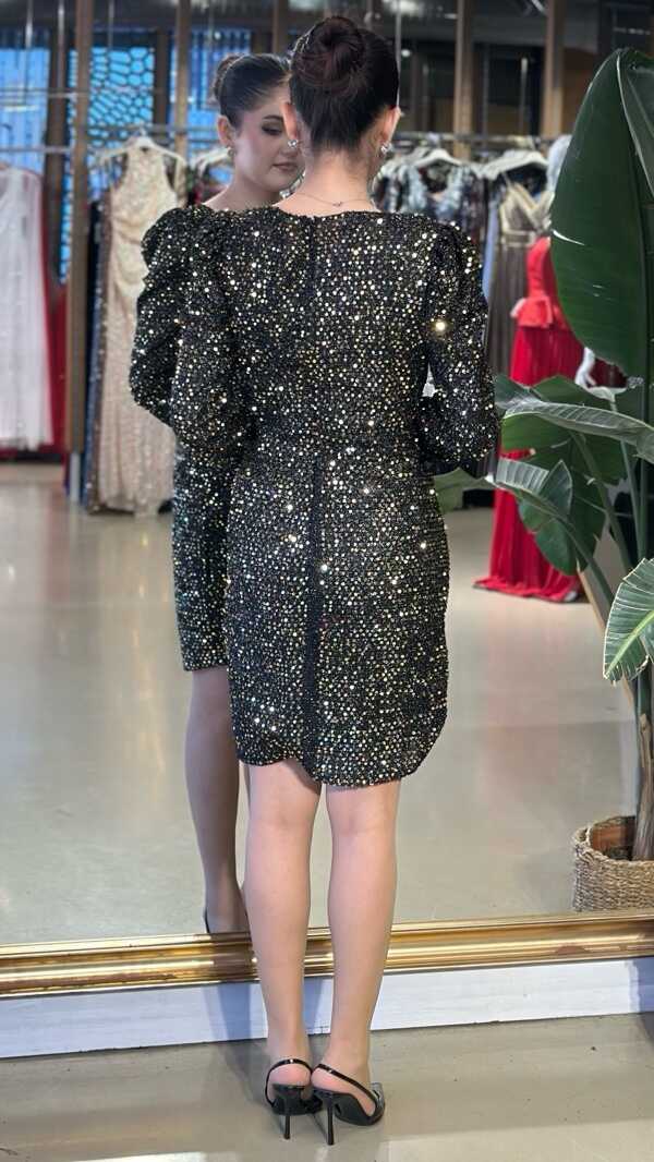 Siyah Simli Kloş Uzun Abiye Elbise 11007-2